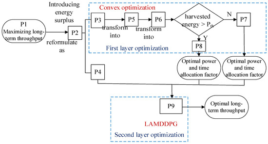 Optimization problem P1 is solved via a layered optimization approach. In this section, we design a logic flow diagram to analyze this process (Figure 3).