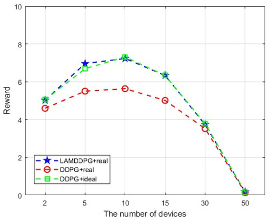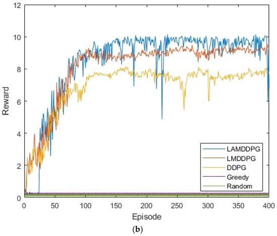 However, owing to the nonlinear features of EH circuit components, some researchers have explored NLPMs to enhance the throughput in EH-enabled CR-NOMA networks [31]. For instance, a SWIPT-CR sensor network framework with NLPM was designed, and its throughput performance was analyzed [32]. In EH-CR-NOMA networks with NLPMs, the throughput of secondary devices is maximized using a prioritized experience replay (PER)-DDPG framework. Compared with DDPG, CER-DDPG, and PPO, PER-DDPG converges faster by adopting prioritized sampling from the replay buffer [33]. Additionally, the uplink transmission of EH devices with NLPMs was optimized via a two-layer optimization method. The authors utilized a convex optimization method and modified the DDPG algorithm for this purpose [34]. Furthermore, Li et al. designed an LSTM-driven actor-critic framework to solve the service offloading problem with a faster convergence rate than DDPG in an IoT network [35]. In another heterogeneous edge network, a distributed multi-agent PPO resource allocation algorithm was proposed to maximize the sum rate [36]. When offloading tasks occurred in fast-varying vehicular networks, various multi-agent reinforcement learning frameworks were leveraged for efficient resource allocation [37].