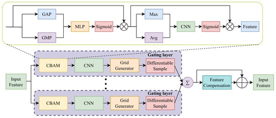 Soft Quality Gating. The importance of each branch is adaptively determined through a Convolutional Block Attention Module (CBAM)-inspired attention gate: