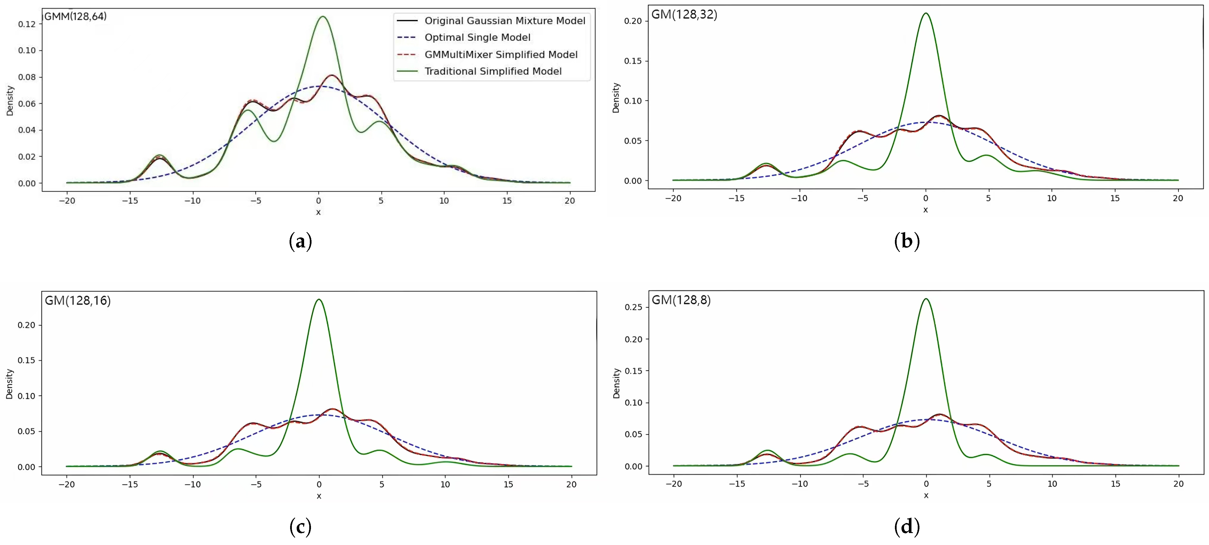 - Chen, L.; Wang, H.; Zhang, X. Efficient Compression of Gaussian Mixture Models via KL Divergence Minimization. Electronics 2023, 12, 1876. [Google Scholar] [CrossRef]