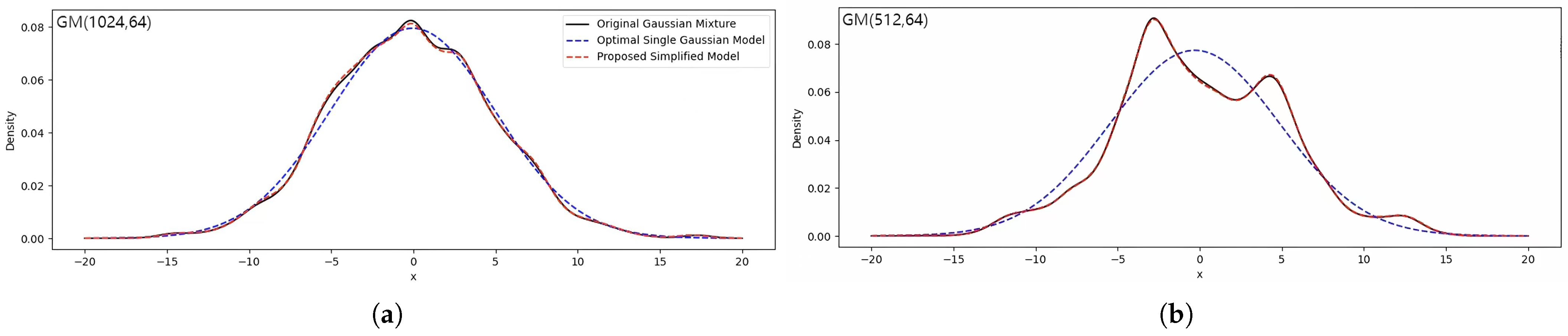 4.1. Experiment 1: Comparative Verification of Simplification Effects for One-Dimensional GMM
