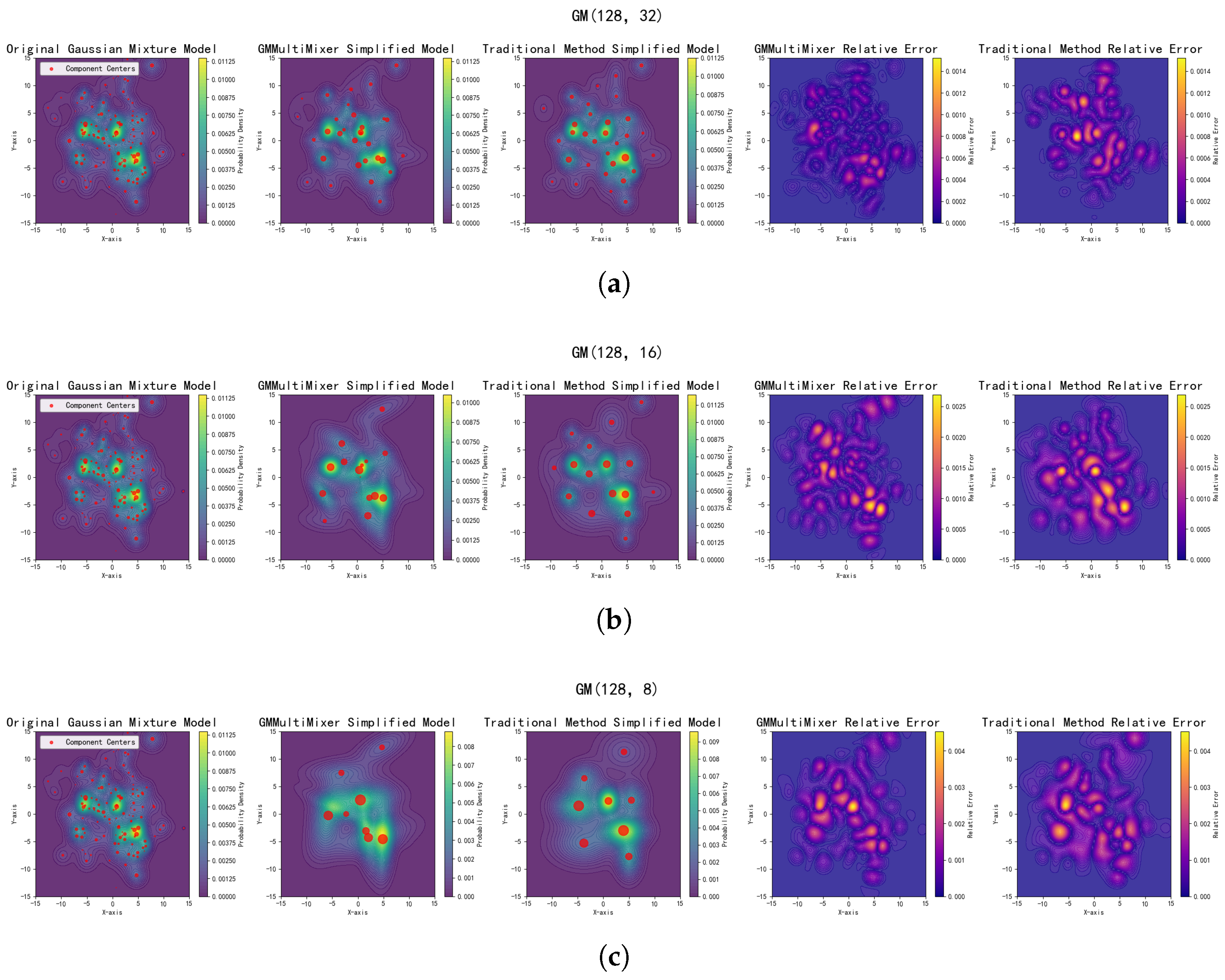 4.3. Experiment 3: Verification of Simplification Effects for Two-Dimensional GMM