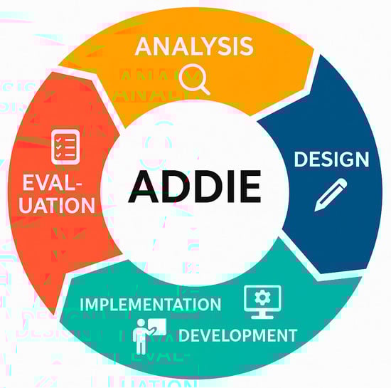 The Education Center for the Environment and Sustainability (E.S.E.C.) of Kastoria, in collaboration with the Digital Media and Communication Strategy Laboratory of the Department of Communication and Digital Media at the University of Western Macedonia, has developed a series of XR digital applications that integrate archeological research, environmental education, and contemporary technology. For the systematic development of digital experiences, the ADDIE model (Analysis–Design–Development–Implementation–Evaluation) was applied [10,11,12,13,14]. The program “Prehistoric Lakeside Settlement of Dispilio” was designed to engage students with the Neolithic past through processes of discovery, exploration, and creative interaction.