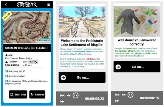 - The augmented reality applications “Virtual Findings in Dispilio”, “Crime in the Lakeside Settlement”, and “Once Upon a Time in Dispilio”, leveraging TaleBlazer (MIT STEP Lab) and geolocation-based navigation [15].