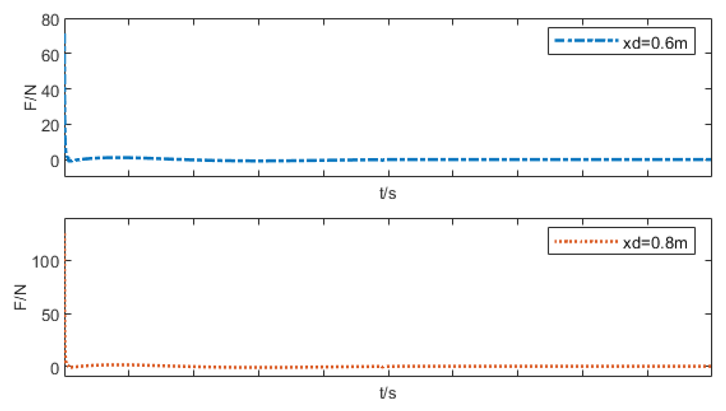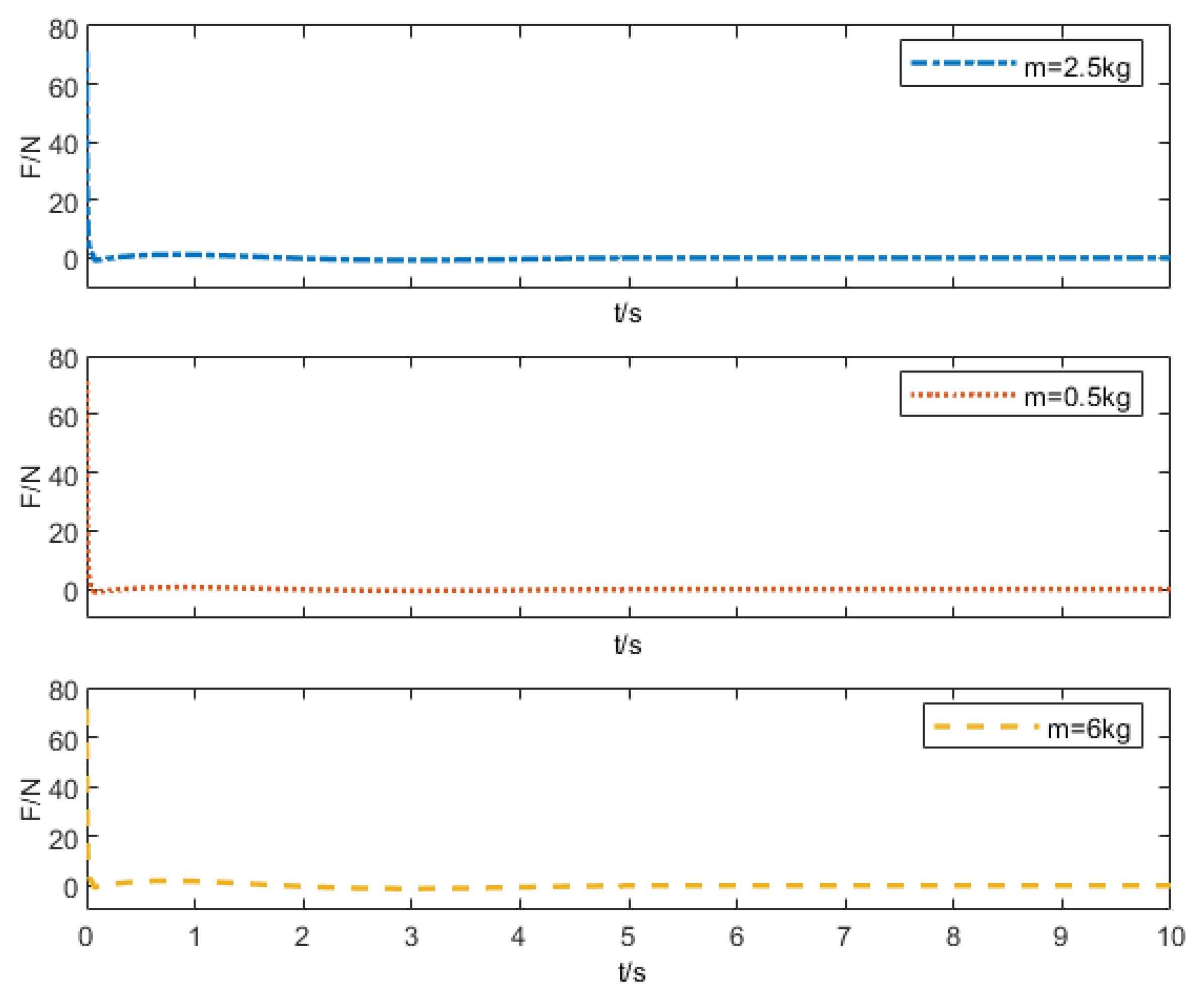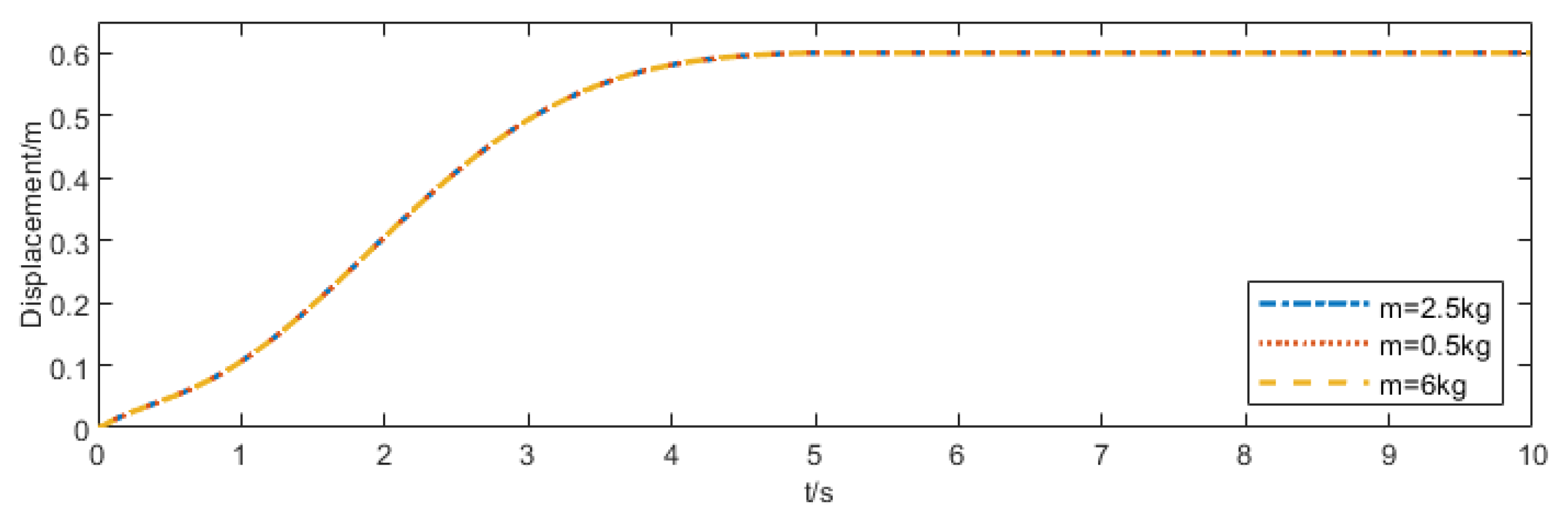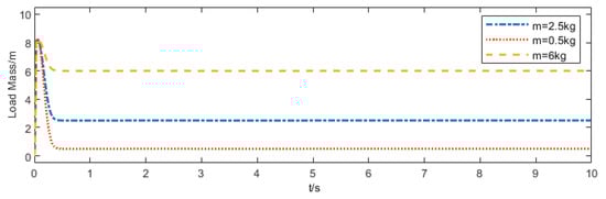 - The mass-adaptive control law designed in this paper can accurately estimate unknown load masses and adapt to varying loads, significantly enhancing the system’s robustness and adaptability under conditions of unknown load mass;