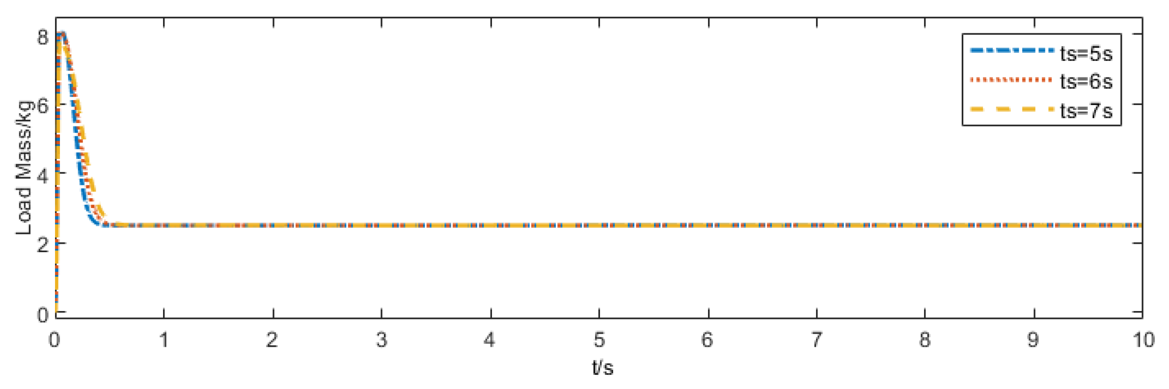 - Focusing on the practical engineering challenge where load masses are not fully known with precision, a mass-adaptive law was designed to estimate load masses online while ensuring convergence within a prescribed time frame. This approach mitigates the impact of unknown mass disturbances on control performance, thereby enhancing engineering applicability;