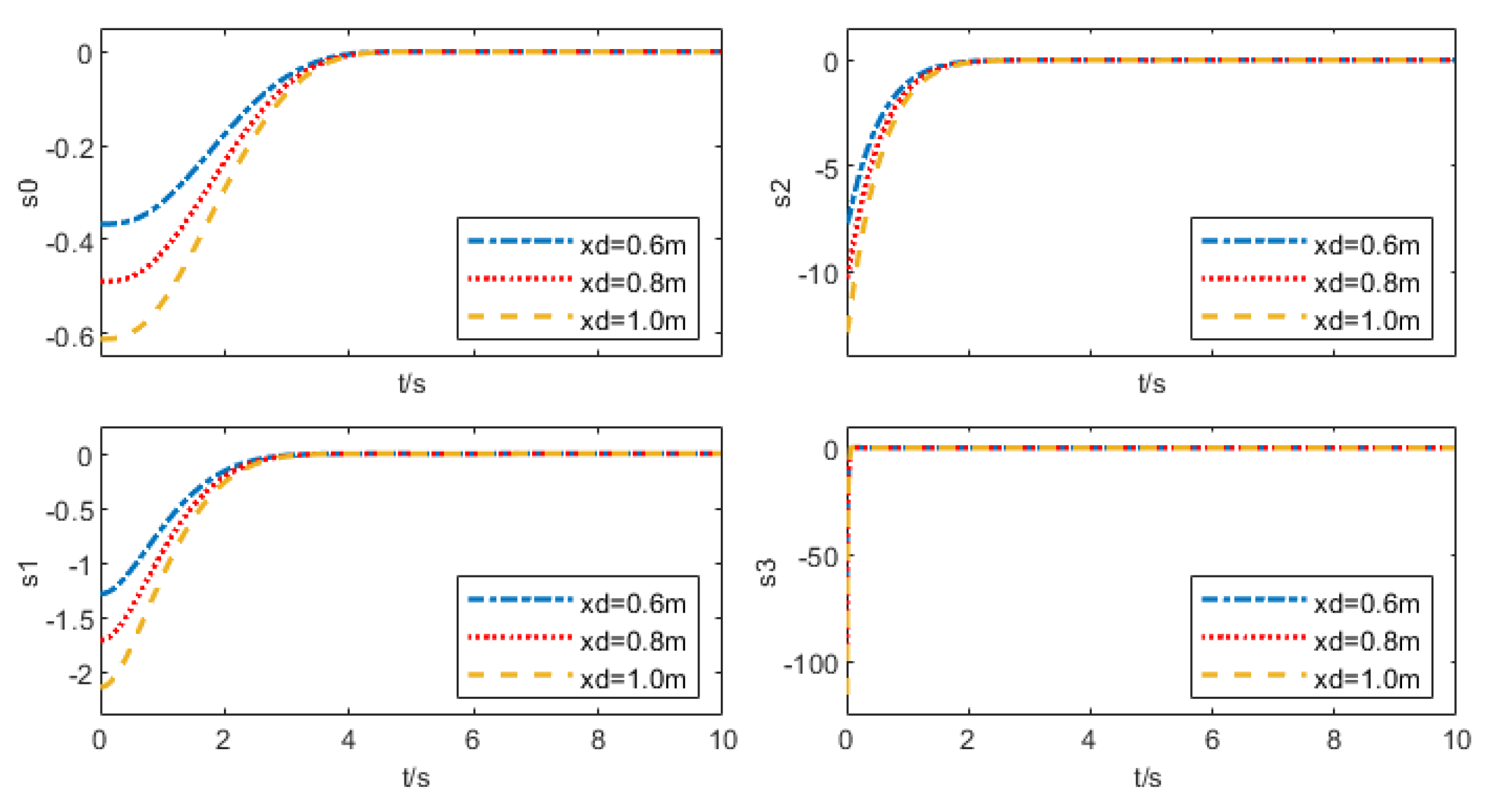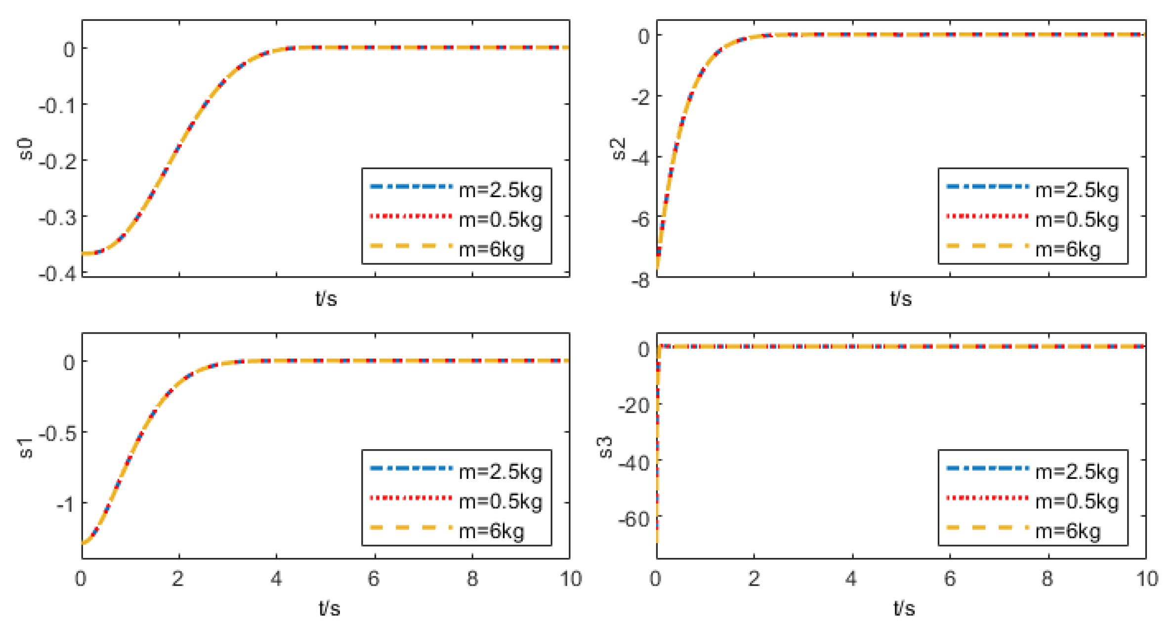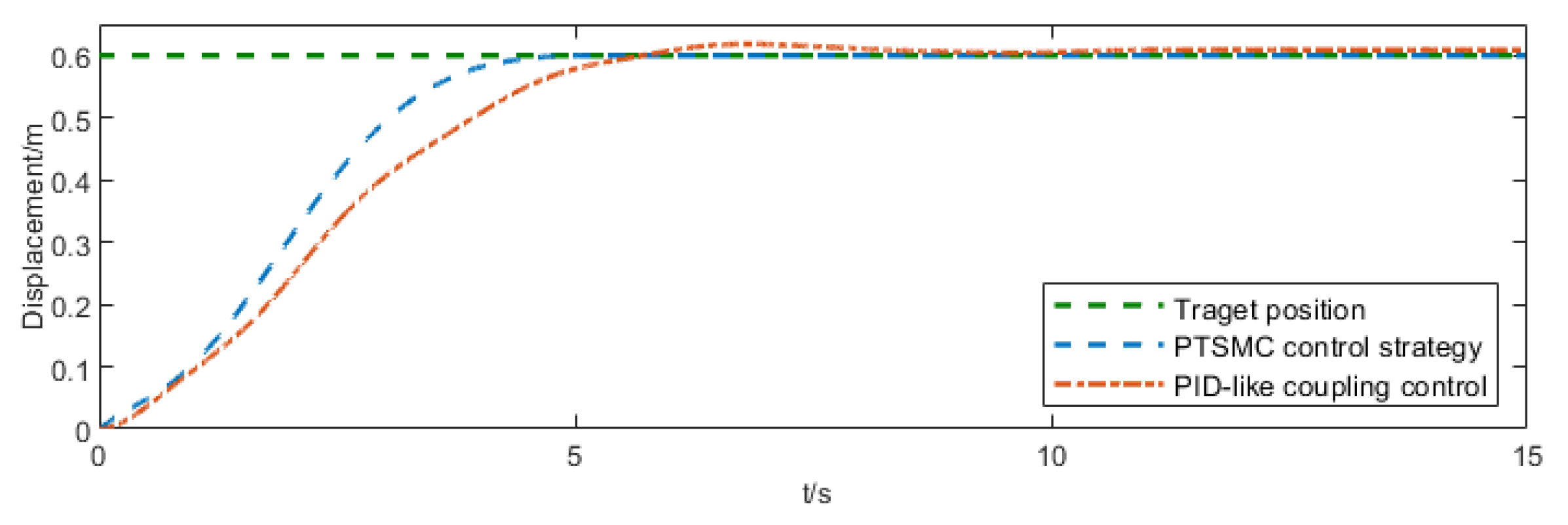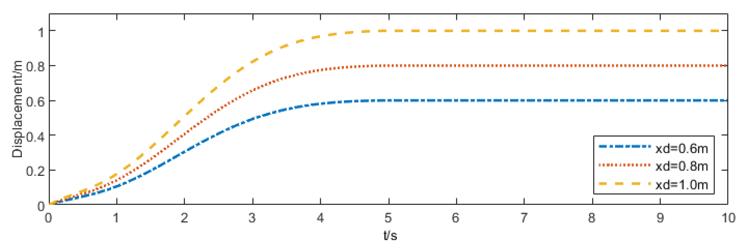- Robustness Test: Considering that the transfer car performs diverse transport tasks in complex and variable operating environments, its robustness is verified by altering target positions, load masses, and setting non-zero initial conditions.
