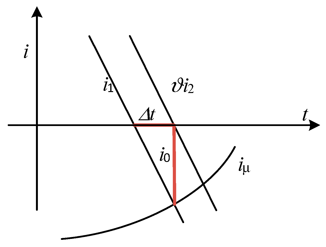 Figure 2 shows a sketch of the primary current and the secondary current near the place where they pass through zero, and of the magnetizing current. It is apparent that the derivative of sinusoidal primary current