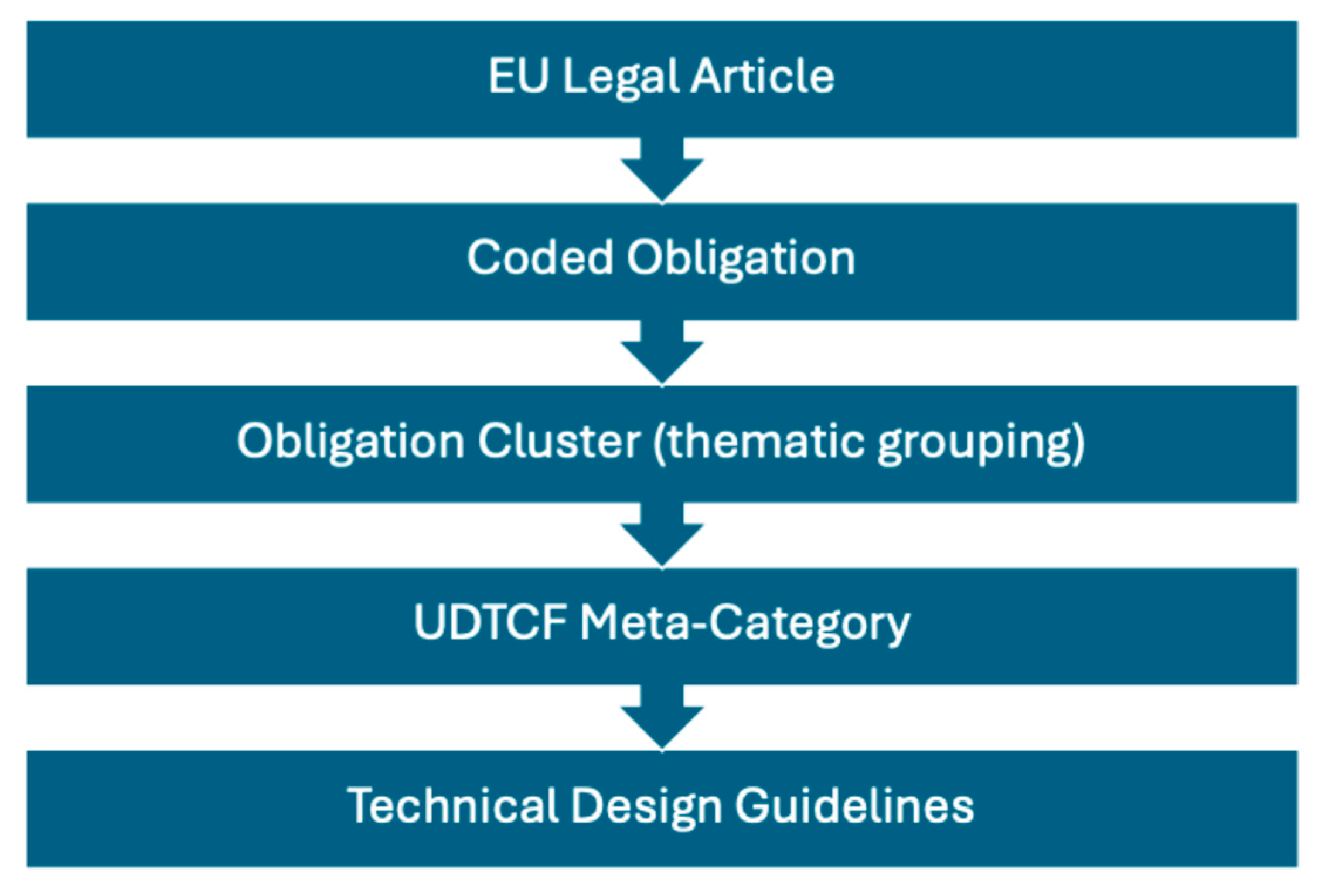 Building on the regulatory corpus identified through the PRISMA-ScR process, the second phase developed a unified framework translating complex and overlapping EU obligations into an integrated compliance model for Digital Twin systems. This phase applied a design-science logic, combining deductive legal synthesis with inductive conceptual modelling to derive a normative, technical, and organisational framework relevant across multiple domains of deployment.