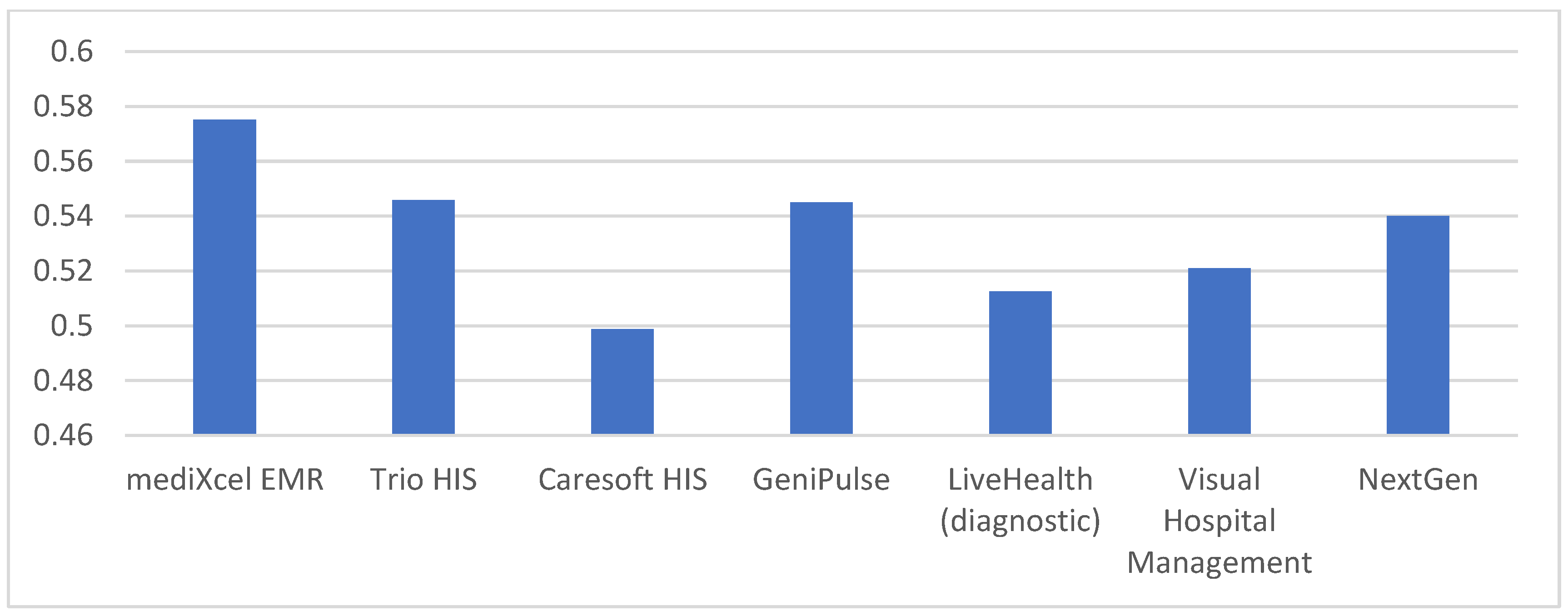 | 1 | mediXcel EMR | 0.42476 | 0.98574 | 0.57524 | 1 |