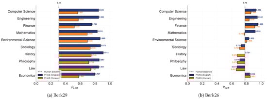 The largest divergence occurs in Berk15 (56 pp gap), where Korean strongly prefers Left (92%) while English shows weak preference (36%): a complete reversal in majority choice. This scenario presents conflict between self-interest (Left: USD 700 for B) and equity-efficiency (Right: equal USD 600 each, higher total surplus). Korean’s overwhelming Left preference demonstrates that language fundamentally alters whether individual payoff maximization or collective fairness-efficiency dominates.