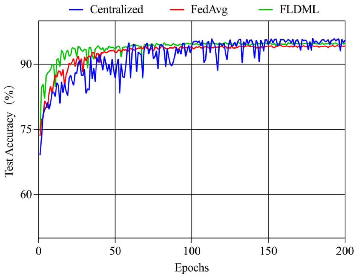 - Comprehensive Validation: Through extensive comparative experiments on the ISCX dataset, we demonstrate that FLDML achieves higher traffic classification accuracy than both a centralized BN-CNN baseline and classical federated algorithms like FedAvg, effectively balancing performance with the privacy benefits of decentralized training.