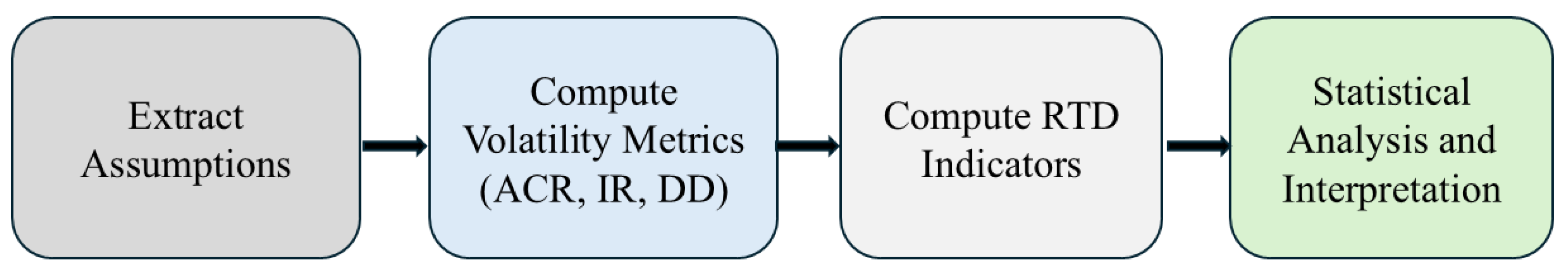 37]. We defined three volatility measures, i.e., Assumption Change (ACR), Invalidation Ratio (IR), and Dependency Density (DD), to capture how assumptions evolve, become invalid, or interrelate during modeling. Their relationships with RTD indicators were evaluated using correlation and regression analyses on a final set of 89 environmental assumptions.