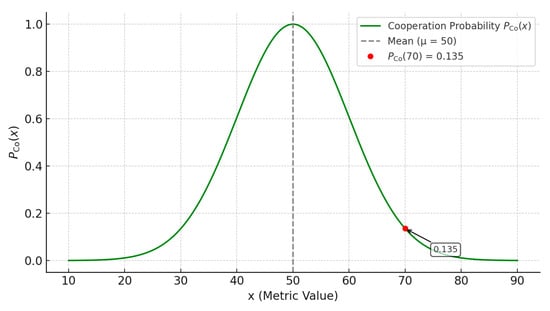 Multiple studies, through experiments or simulations, have verified that in WSNs where node behaviour is independent, homogeneous, and static, the traffic of nodes and the collected sample data approximately follow a Gaussian distribution when the number of nodes is large enough [37,38,39]. Therefore, we adopt a cooperation probability calculation method based on a Gaussian distribution.