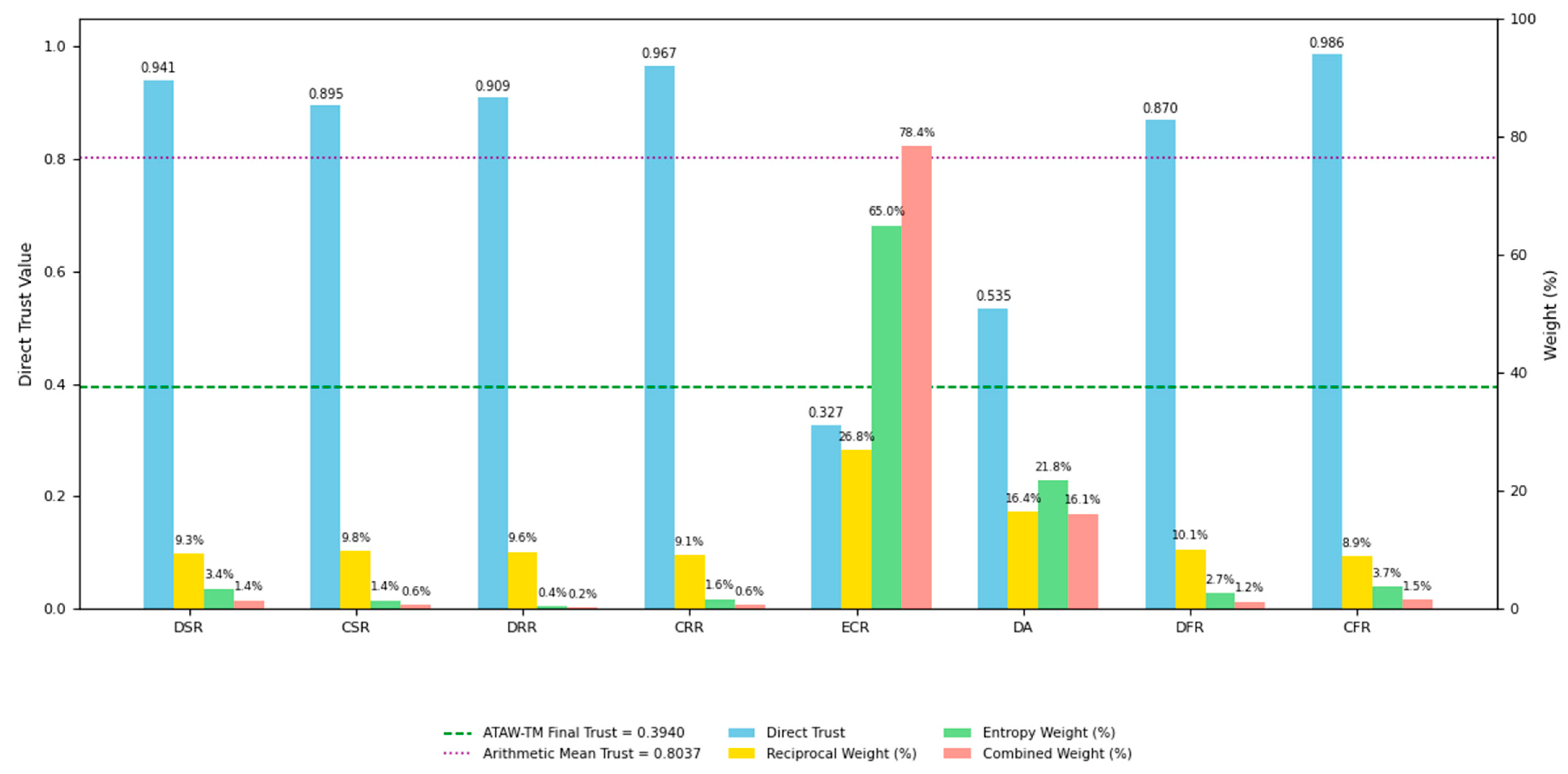 . The weighting scheme for each trust metric, illustrated in Equation (11),