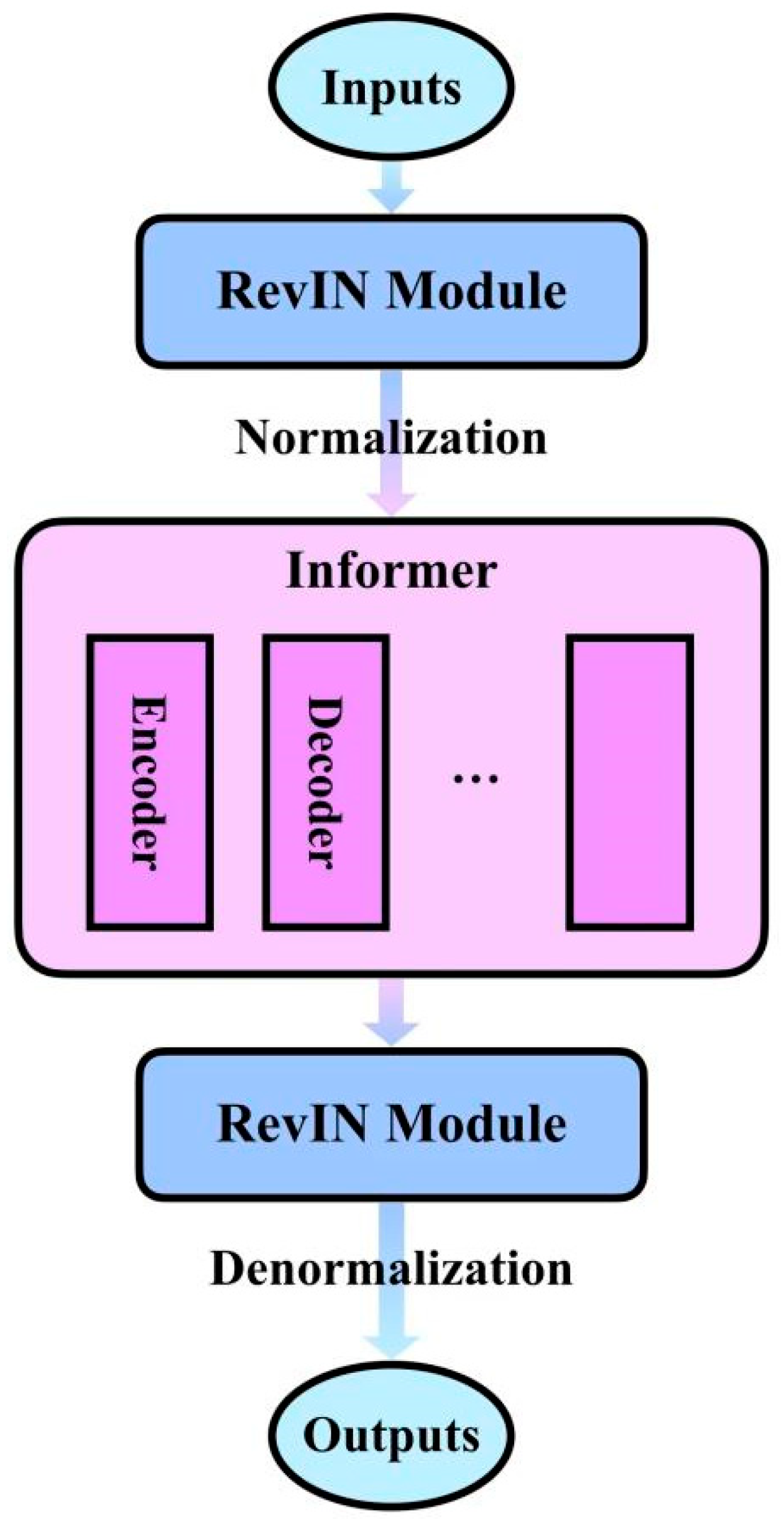 - An improved RevInformer model is developed. The introduction of the RevIN layer significantly enhances the model’s adaptability to distribution shifts in temporal data. Concurrently, its ProbSparse self-attention mechanism and generative decoder design ensure long-range dependency modeling while markedly improving the efficiency of long-sequence forecasting.