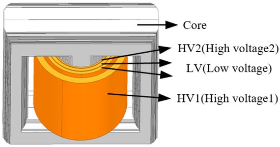 (3) This paper mainly focused on the research of the core components. Therefore, the windings were simplified into a cylindrical shape. Meanwhile, structural components such as clamping parts were ignored and were equivalent with corresponding constraint conditions.
