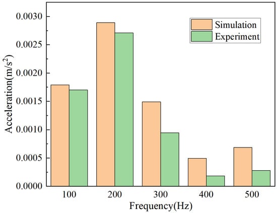 This paper only shows the comparison chart of the simulated values and experimental data at position 1, as shown in Figure 15. The vibration characteristics of both showed good agreement. However, deviations between simulated and experimental results are inevitable due to the direct mechanical coupling between the core and other components in the actual system, which was not accounted for in the simulation model. The simulated values exhibited an overestimation tendency.