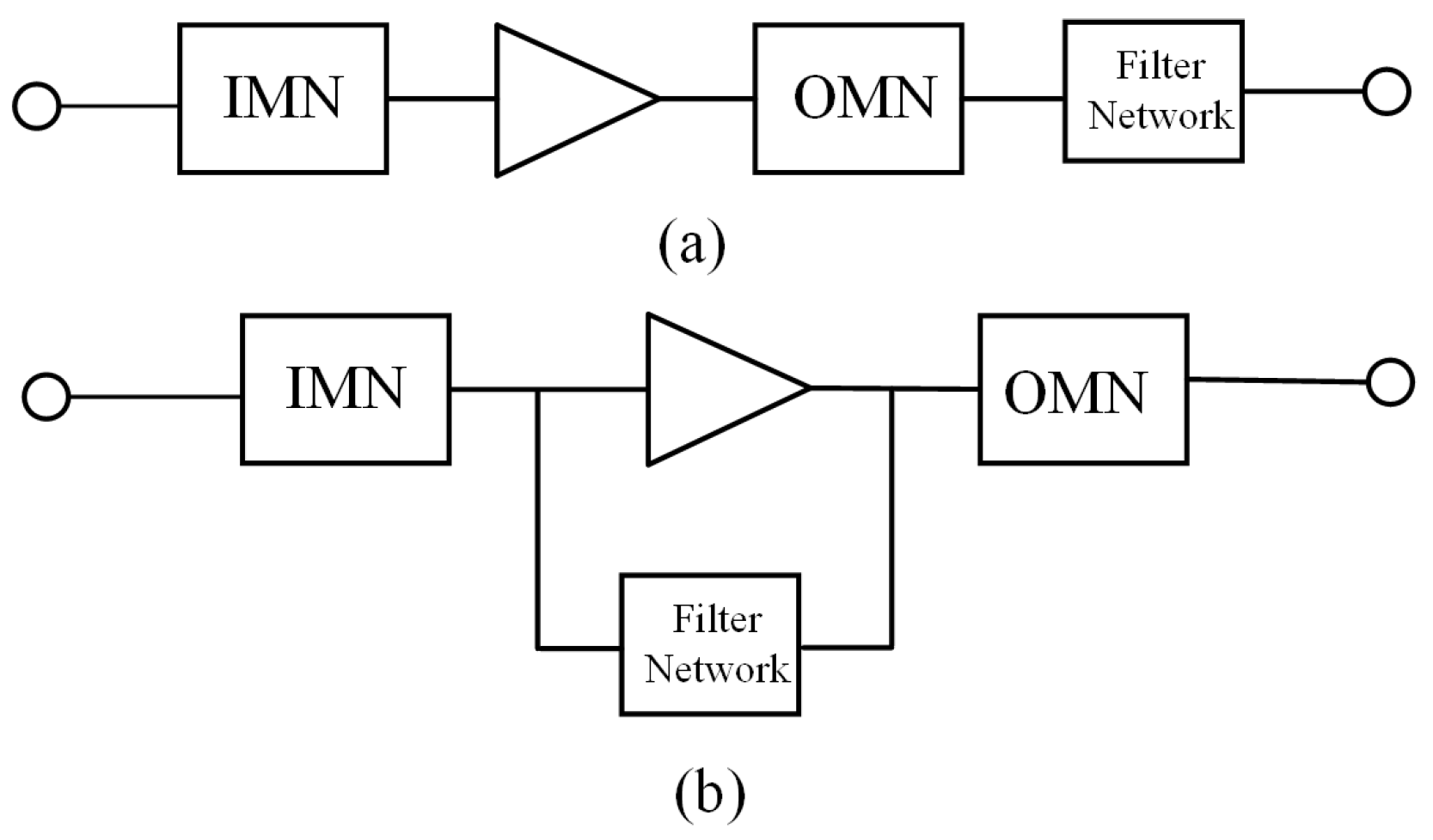 - Li, S.; Wu, L.; Chen, X. Bandpass Filtering Power Amplifier with Wide Stopband and High Out-of-Band Rejection. IEEE Trans. Circuits Syst. II Express Briefs 2023, 70, 969–973. [Google Scholar] [CrossRef]