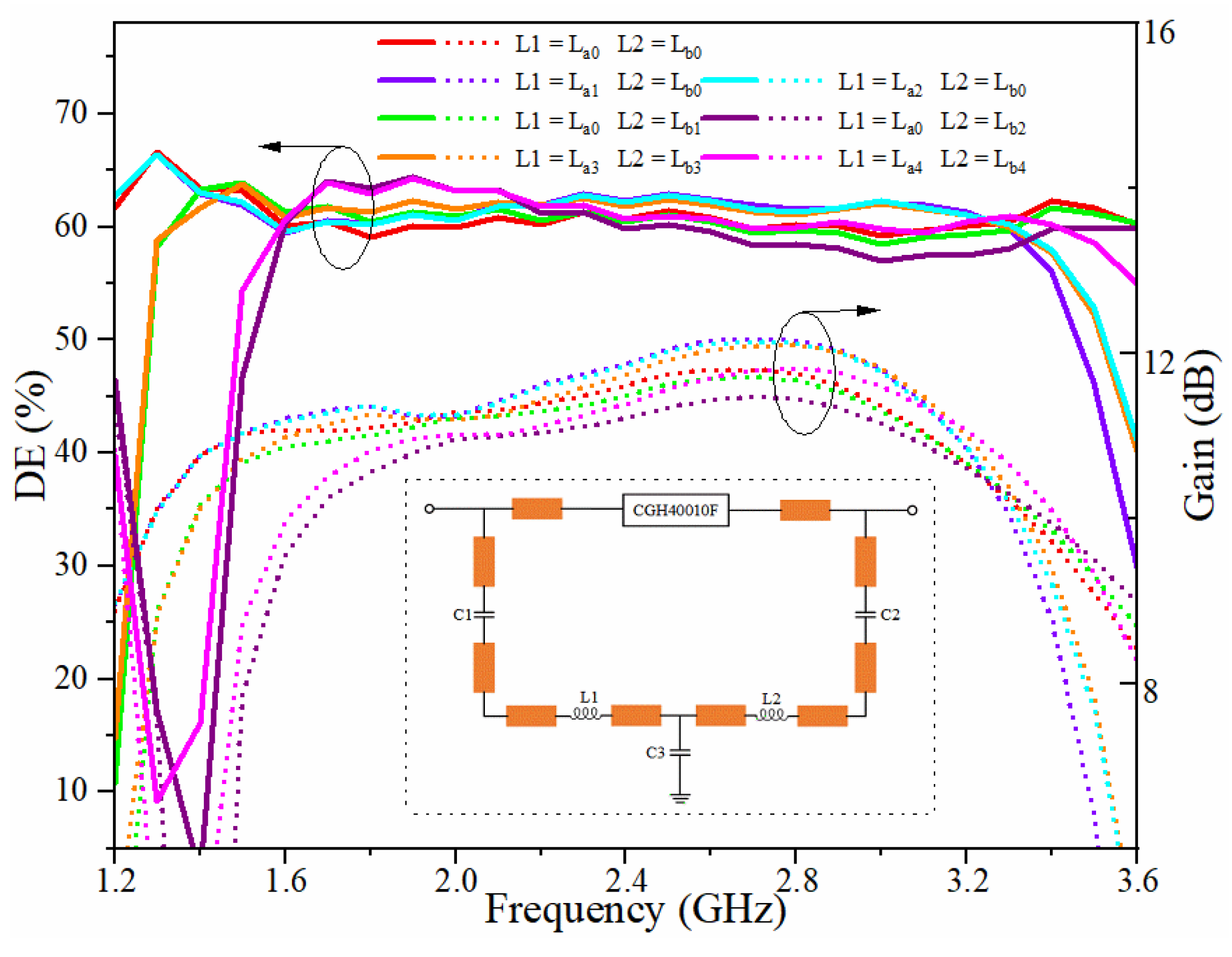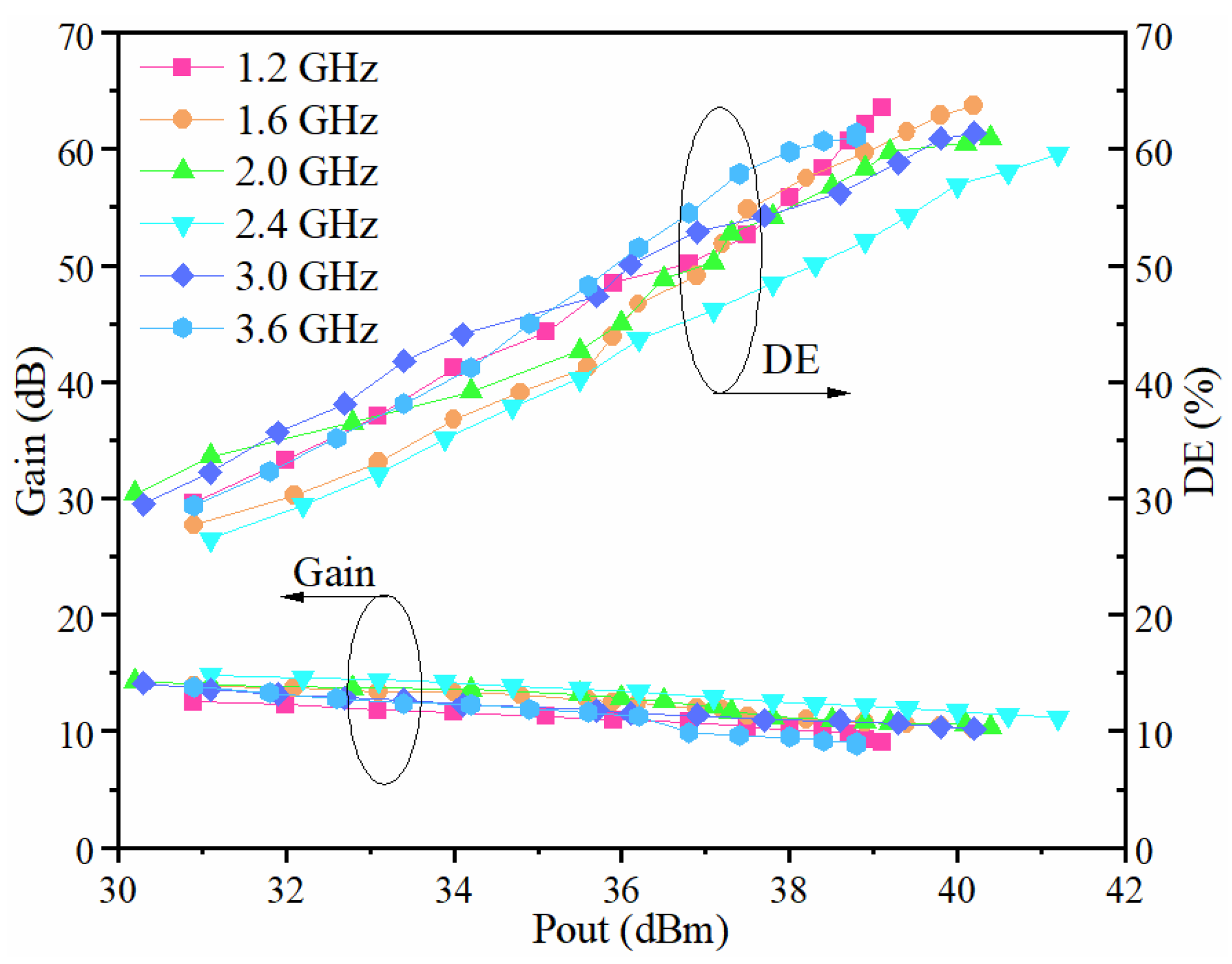 - You, F.; Li, C.; Shi, W.; He, S. Design of a 1.4–3.6 GHz High-Efficiency Broadband Power Amplifiers with Mixed Operation Modes. In Proceedings of the 2018 Asia-Pacific Microwave Conference (APMC), Kyoto, Japan, 6–9 November 2018; pp. 944–946. [Google Scholar]
