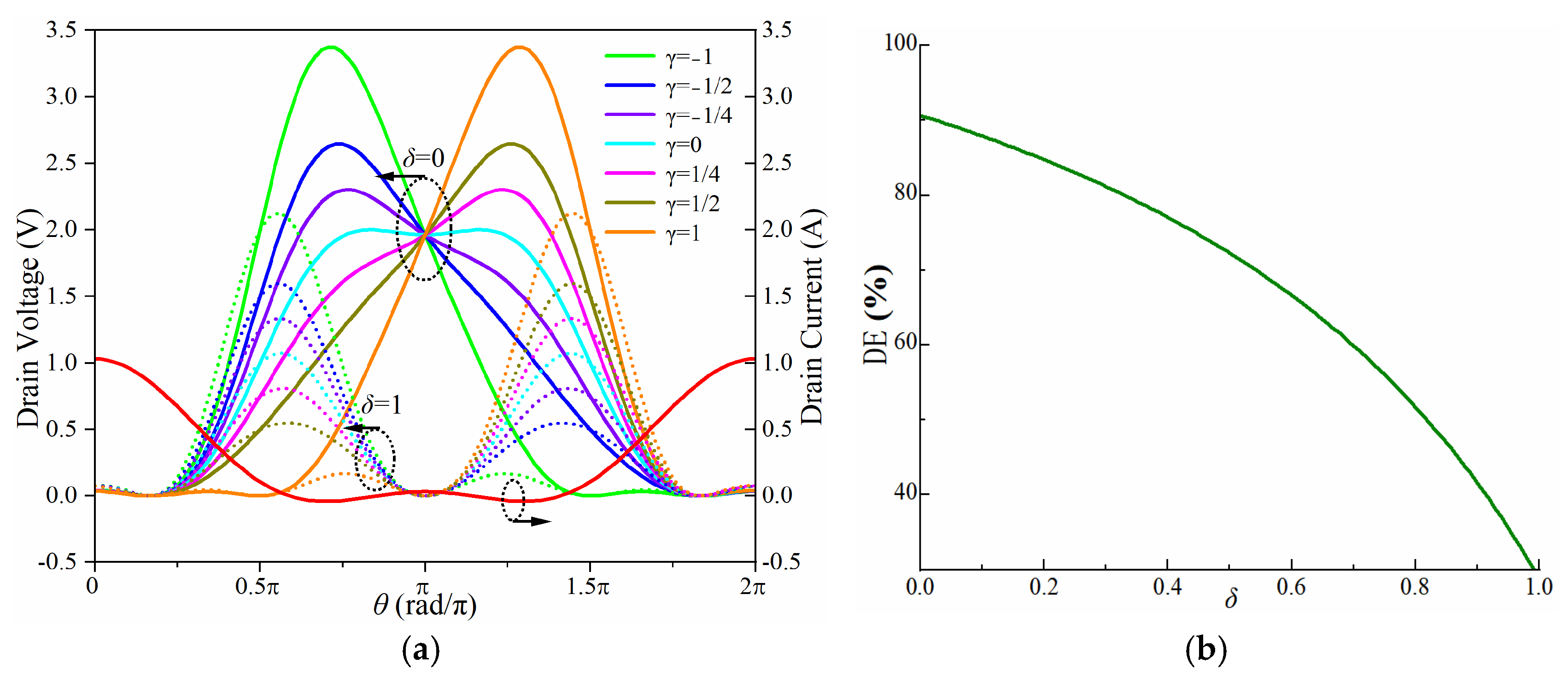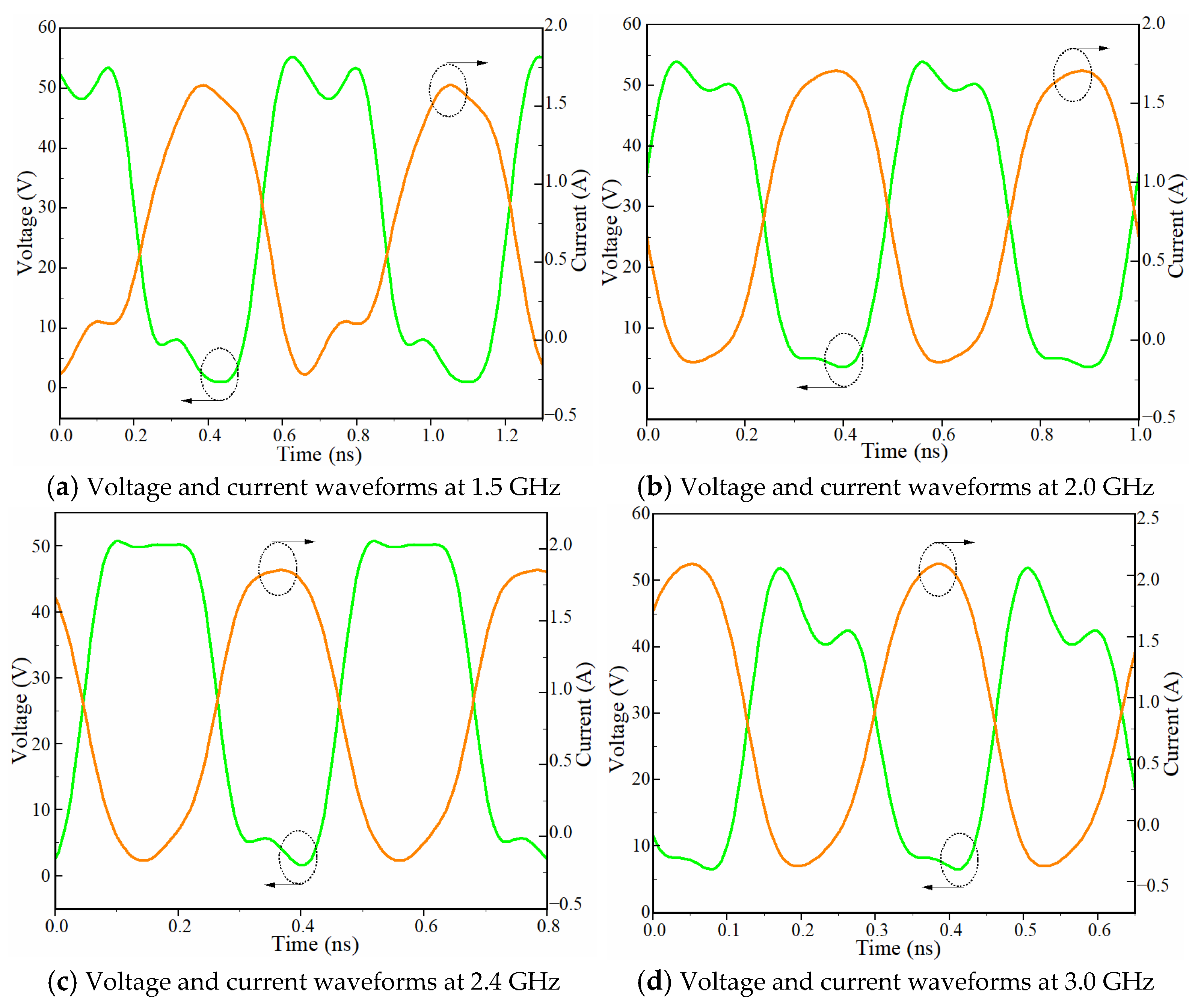 - Gan, D.; Shi, W. Extended Inverse Class-F Continuum for Designing Broadband Power Amplifier. J. Circuits Syst. Comput. 2021, 30, 2150015. [Google Scholar] [CrossRef]