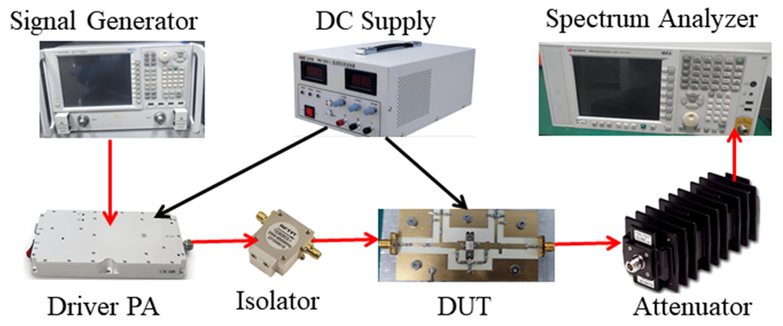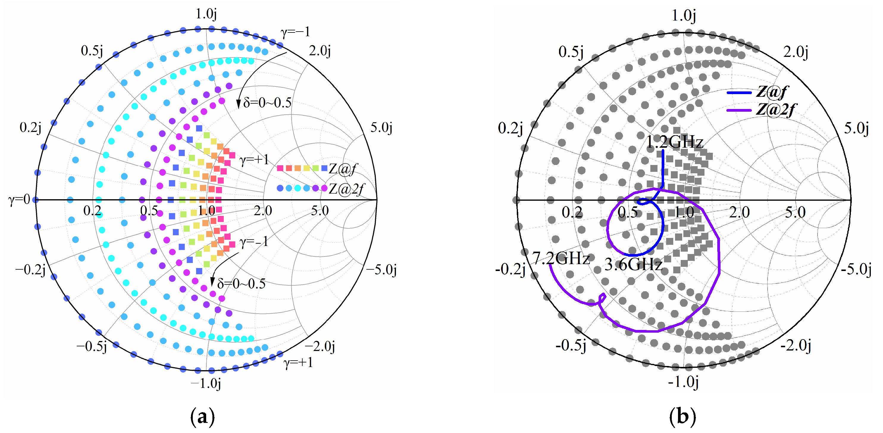 - Jiang, X.; Huang, W.; Bao, C.; Wu, X.; Wei, K.; Liu, X.; Luo, W. A High-Efficiency Continuous Class-F GaN MMIC Power Amplifier Using a Novel Harmonic Matching Network. IEEE Microw. Wirel. Technol. Lett. 2023, 33, 1321–1324. [Google Scholar] [CrossRef]