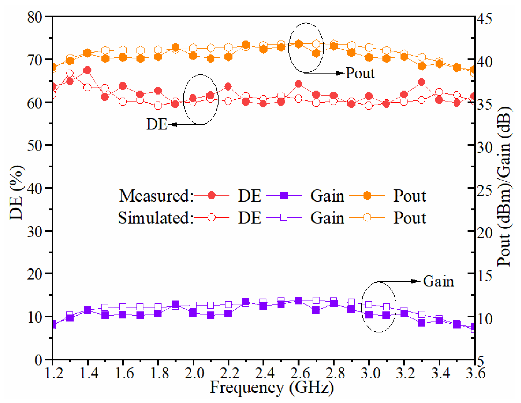 - Li, C.; Zhang, Z.; Su, X.; Li, Y.; Liang, X.; Pei, Y.; Chen, C.; Xu, Y. Compact Internally Matched High-Power Power Amplifier with a Wide Frequency Band of 0.8–2 GHz. Electronics 2024, 13, 2687. [Google Scholar] [CrossRef]