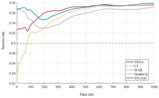 8] proposed the Slot-Cross Q-Learning (SCQL) algorithm, enabling parallel sensing and learning of multiple jamming patterns within a single timeslot, which effectively reduced learning latency and improved anti-jamming performance in rapidly changing environments. Moreover, ref. [
