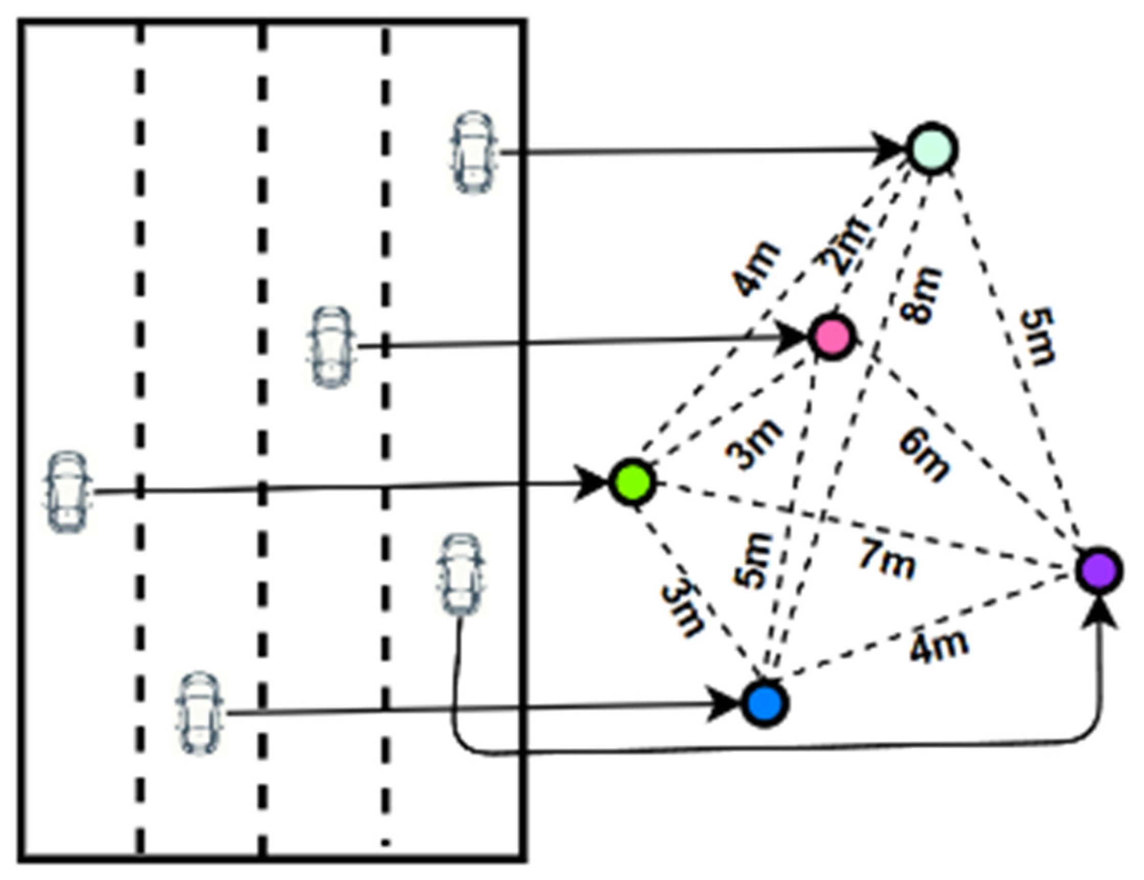 - Schmidt, J.; Jordan, J.; Gritschneder, F.; Dietmayer, K. CRAT-Pred: Vehicle Trajectory Prediction with Crystal Graph Convolutional Neural Networks and Multi-Head Self-Attention. In Proceedings of the 2022 International Conference on Robotics and Automation (ICRA), Philadelphia, PA, USA, 23–27 May 2022; pp. 7799–7805. [Google Scholar]