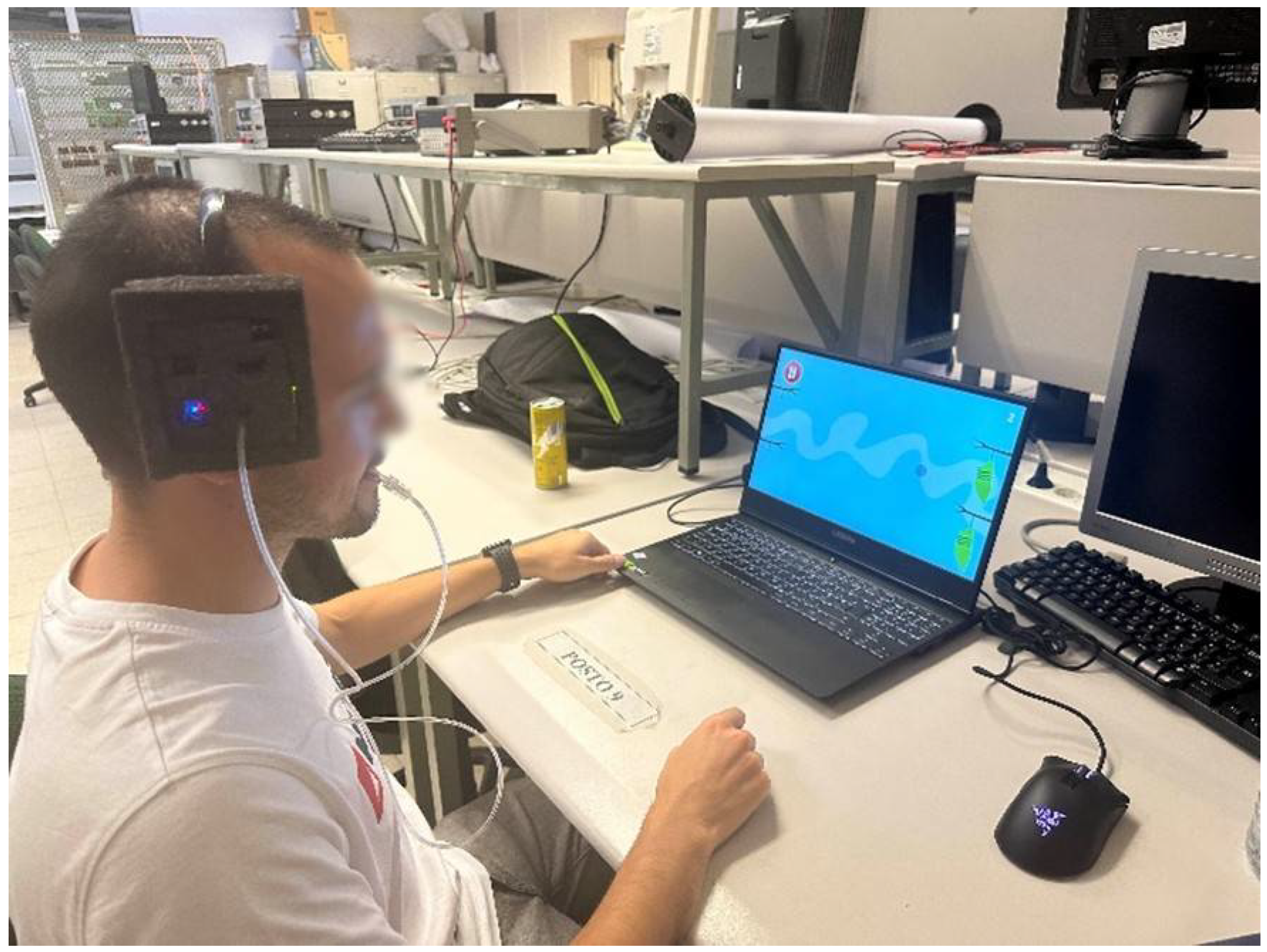The tests were performed using “KINKA Games”, a suite of therapeutic applications designed for cognitive and motor rehabilitation. These games provided real-time feedback on pointer accuracy and smoothness of movement, enabling an intuitive assessment of interaction quality.