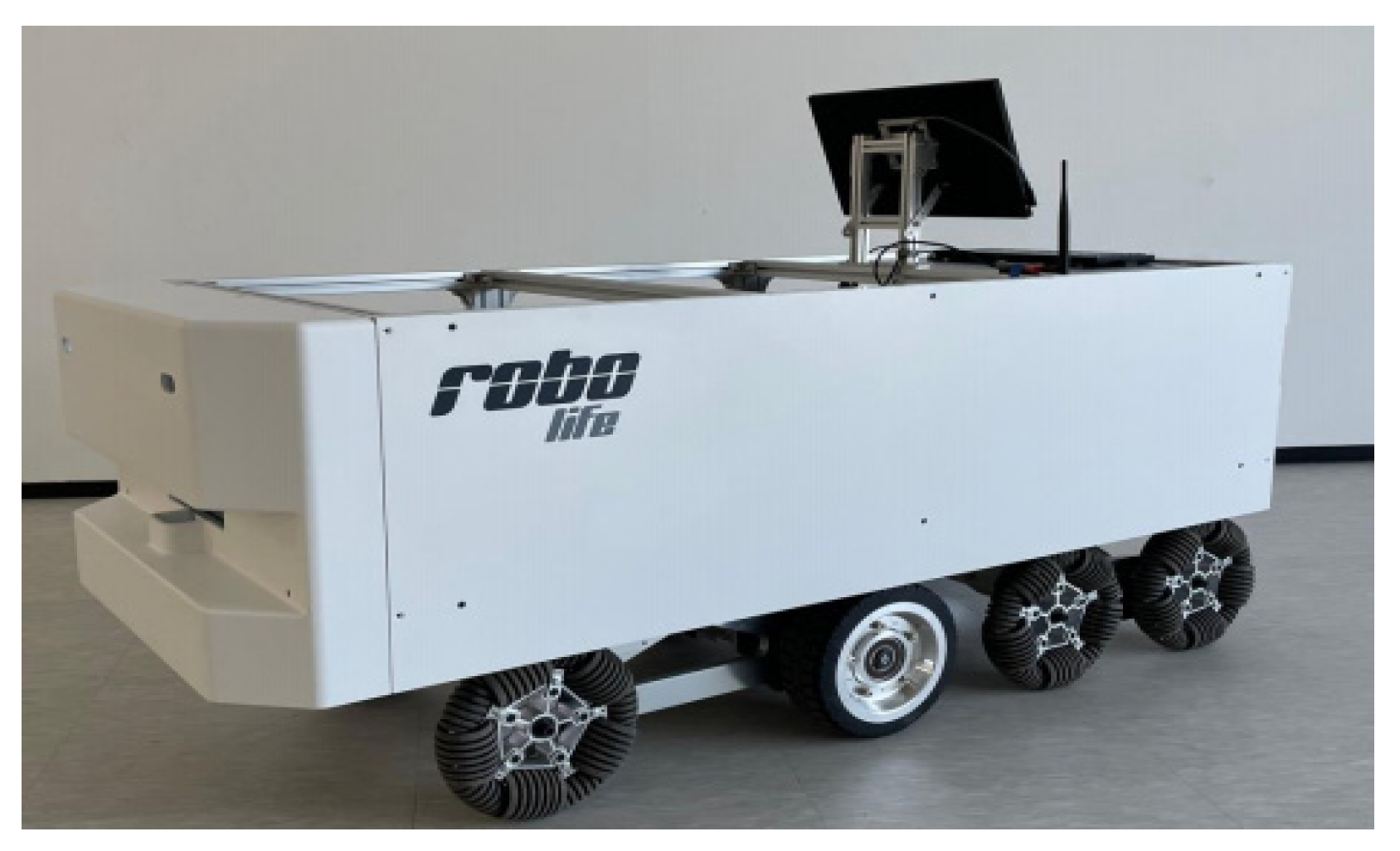 Najim et al. [34] proposed a mobile robot that can move in any direction using Mecanum wheels. Using input from a depth camera and LiDAR sensor, the robot employs SLAM algorithms to map its surroundings and determine its own location. With this technology, robots can navigate hospital corridors, sidestep both static and dynamic obstacles, and deliver medications safely and efficiently. The robot was tested in previously unexplored hospital corridors, and when obstacles were detected, it slowed down and avoided them by reducing motor power. Kim et al. [35] (2023) proposed an autonomous patient transport robot that can safely move between locations without external interference. The autonomous driving system is composed of a path planning module and a motion control module. The path planning module combines the A* algorithm for global path planning with the AHP-based algorithm for local path planning to determine the optimal path. The motion control module also employs a linear quadratic regulator (LQR) controller with a Kalman filter to minimize the robot’s oscillations. However, it is worth noting that this system does not have environmental sensors for autonomous driving, so it is not considered fully autonomous. Cheng et al. [36] explored the scheduling strategy of autonomous mobile robots (AMRs) in the uncertain environment of smart hospitals. To minimize the total cost by taking into account the robot’s service time and travel time, they developed a stochastic programming model. To implement this scheduling strategy, they also proposed a variable neighborhood search (VNS) optimization technique. This study demonstrates that by properly organizing robot charging and service requests, hospitals can achieve substantial cost savings.