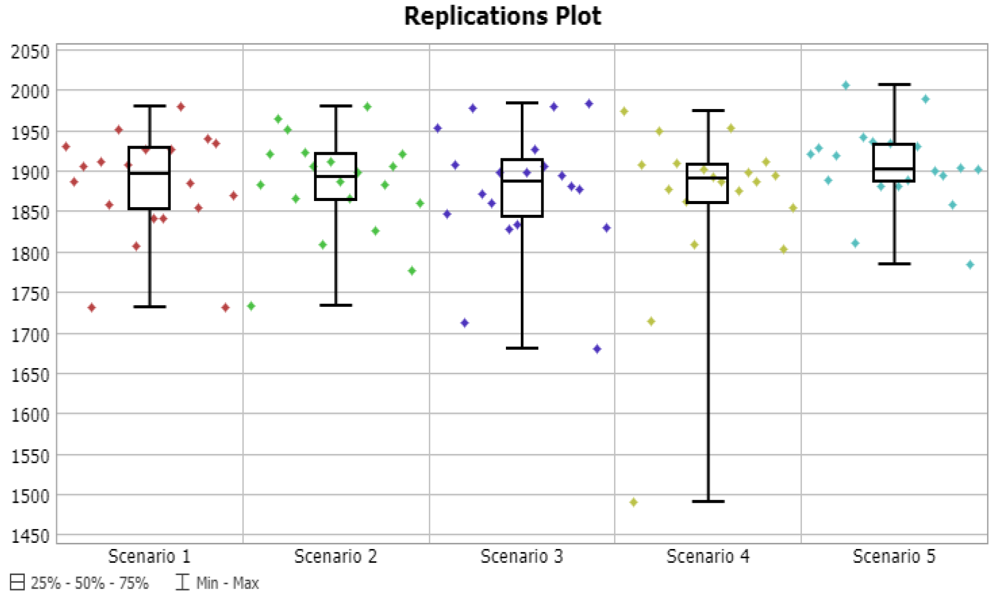 Table 9. Statistics of ‘Average movement distance of staff’ according to scenarios.