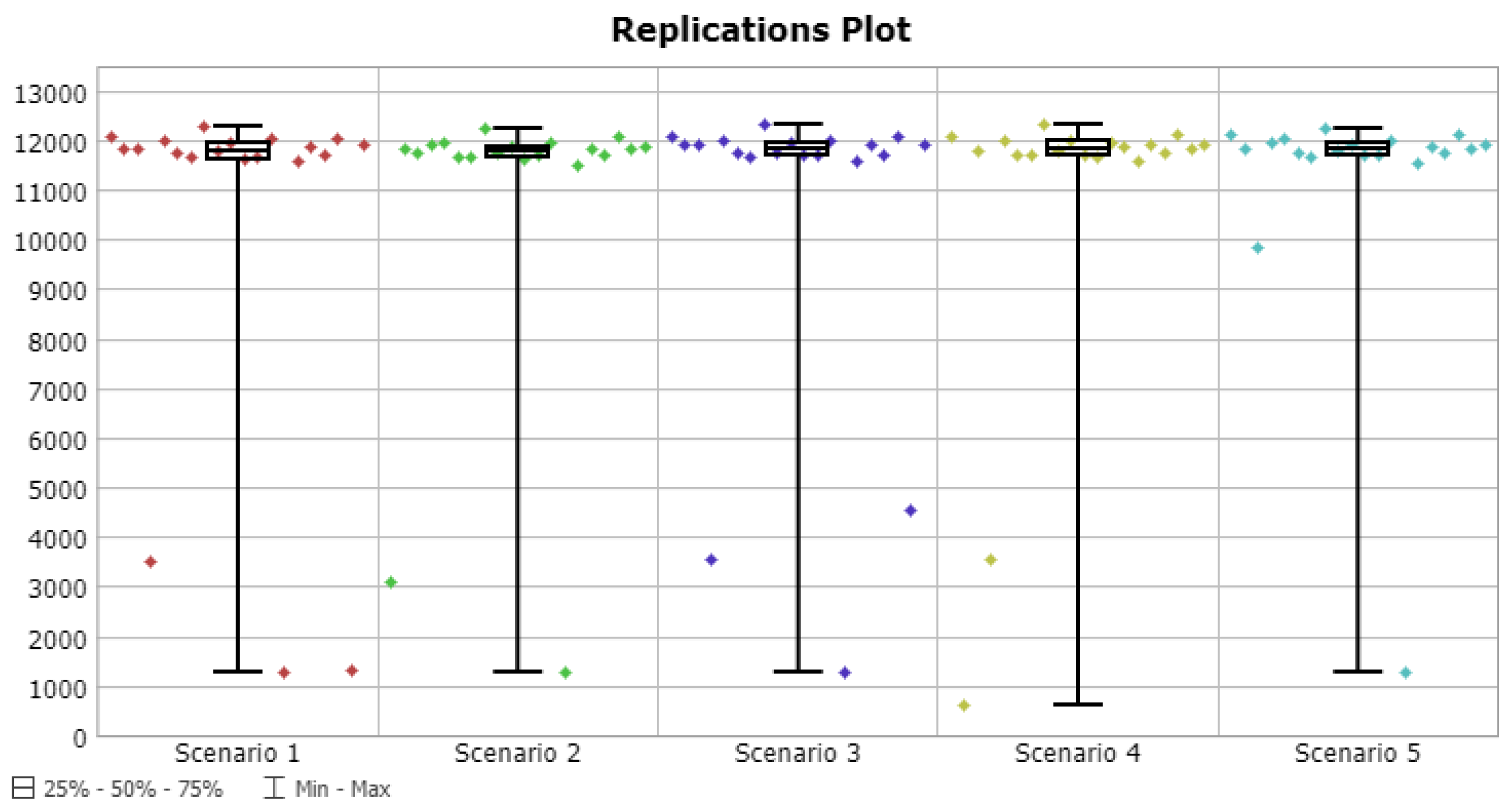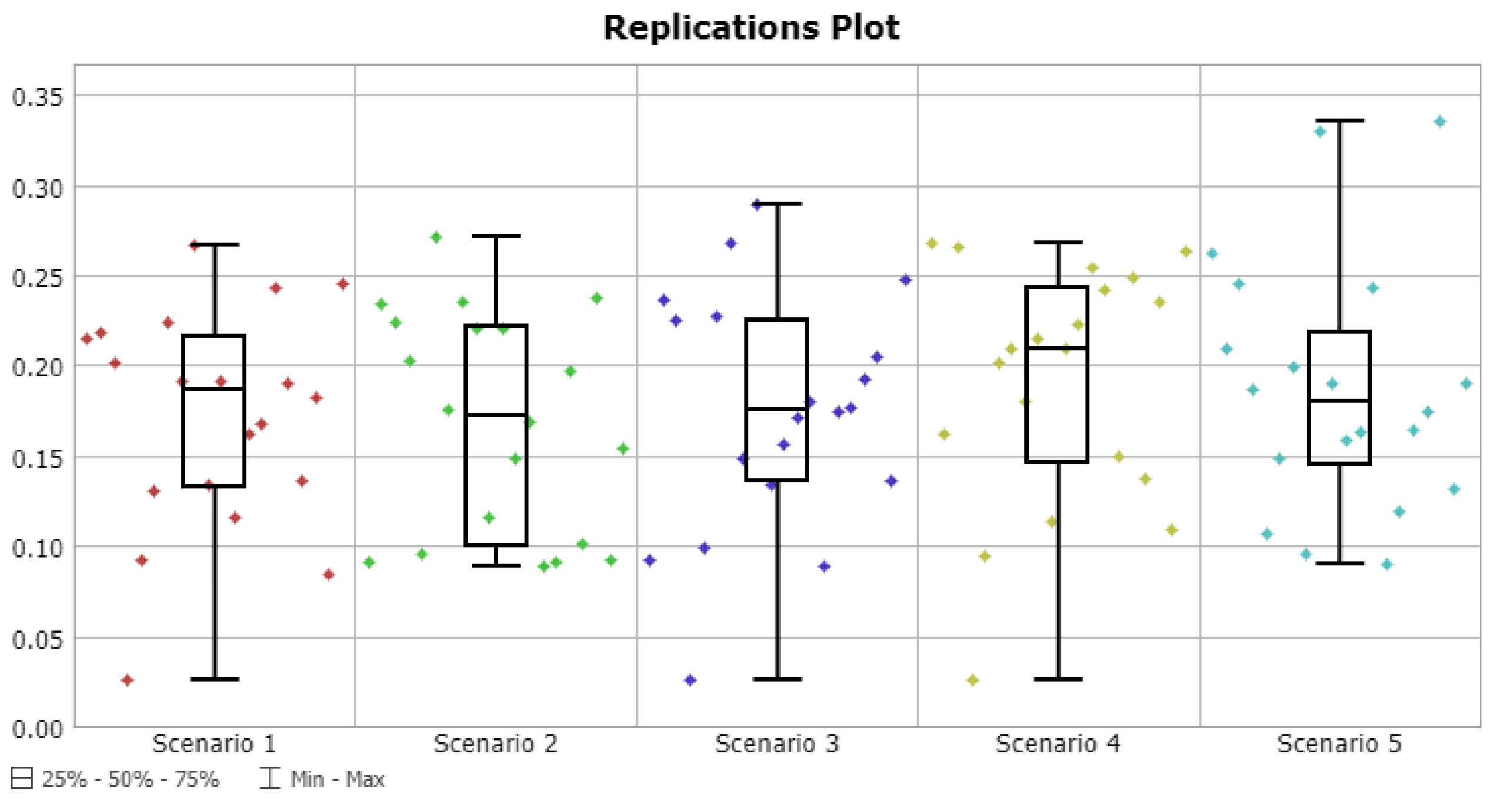 Table 10. Statistics of ‘Average patient handling time of staffs’ according to scenarios.