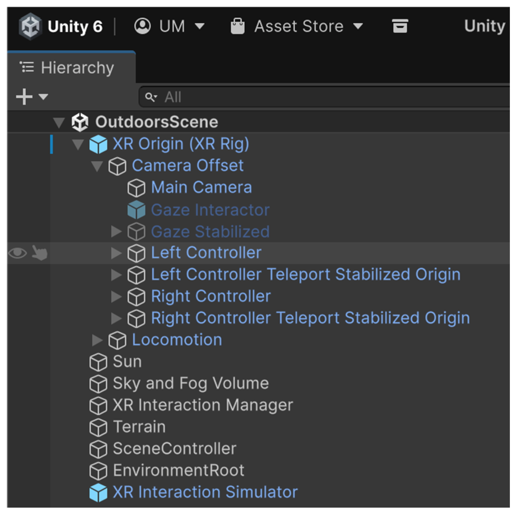 Integration of the Interactive Components: The interaction system, which is portrayed by physics-based manipulation of objects, creation of intuitive user-interface (UI) controls of a virtual tool or menu, or scripting of non-player character (NPC) actions, is programmed by developers.