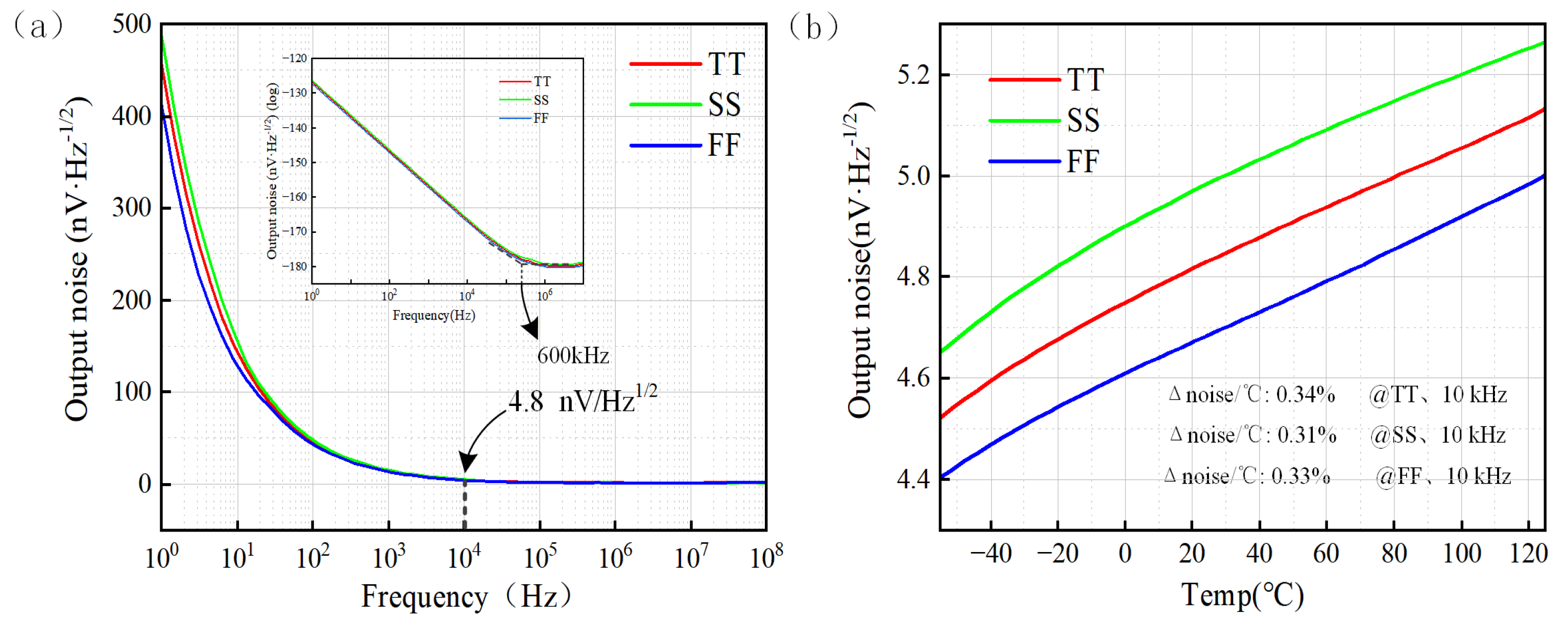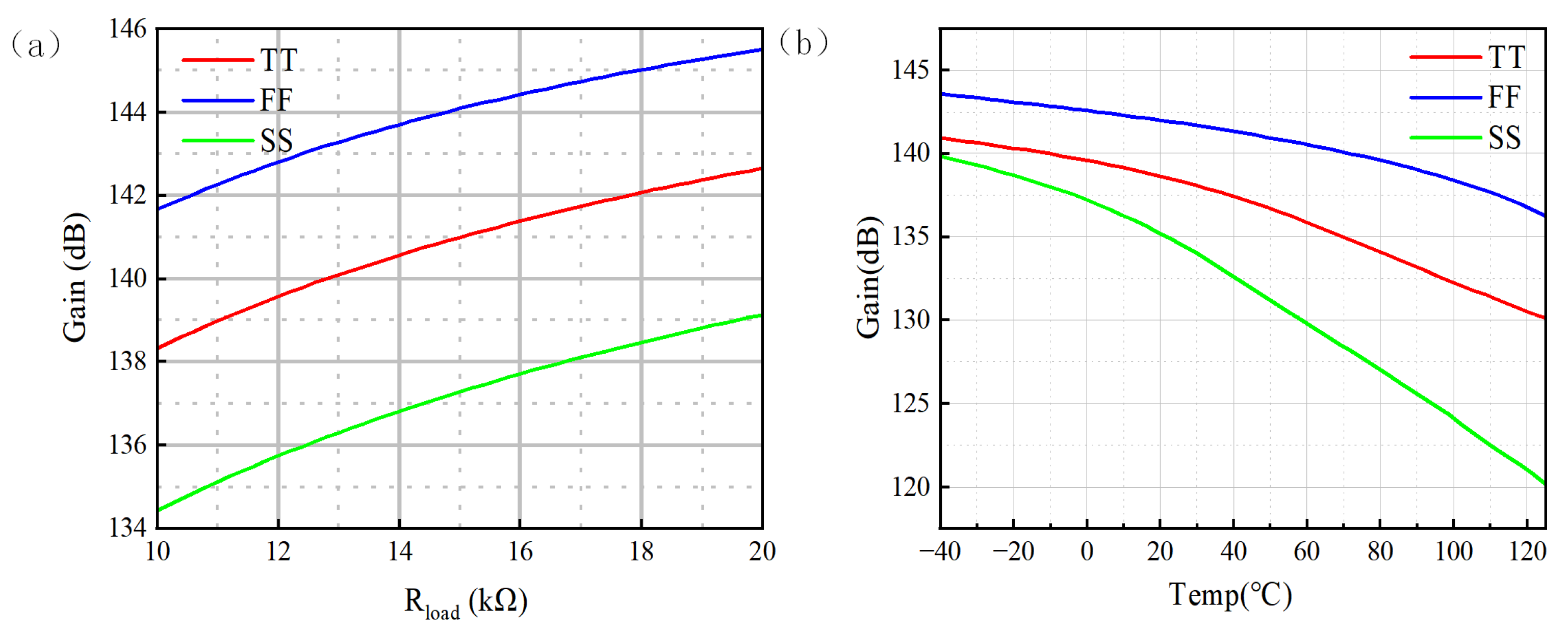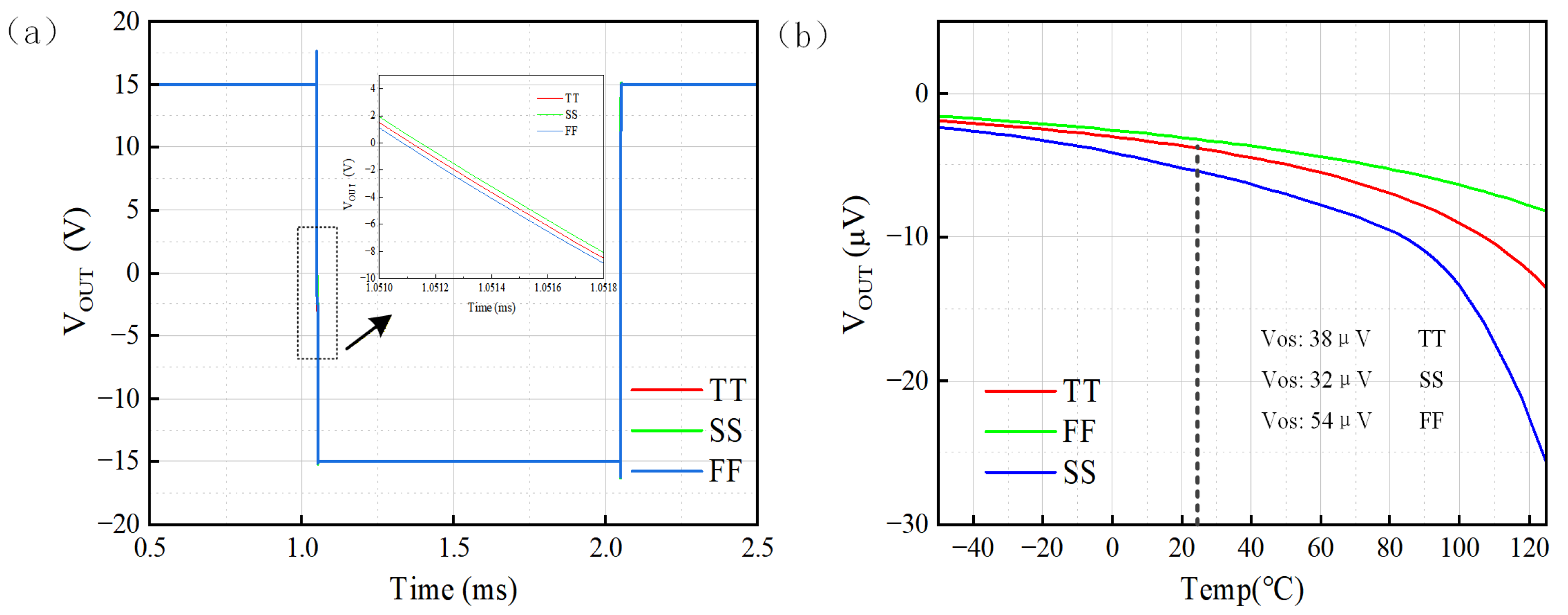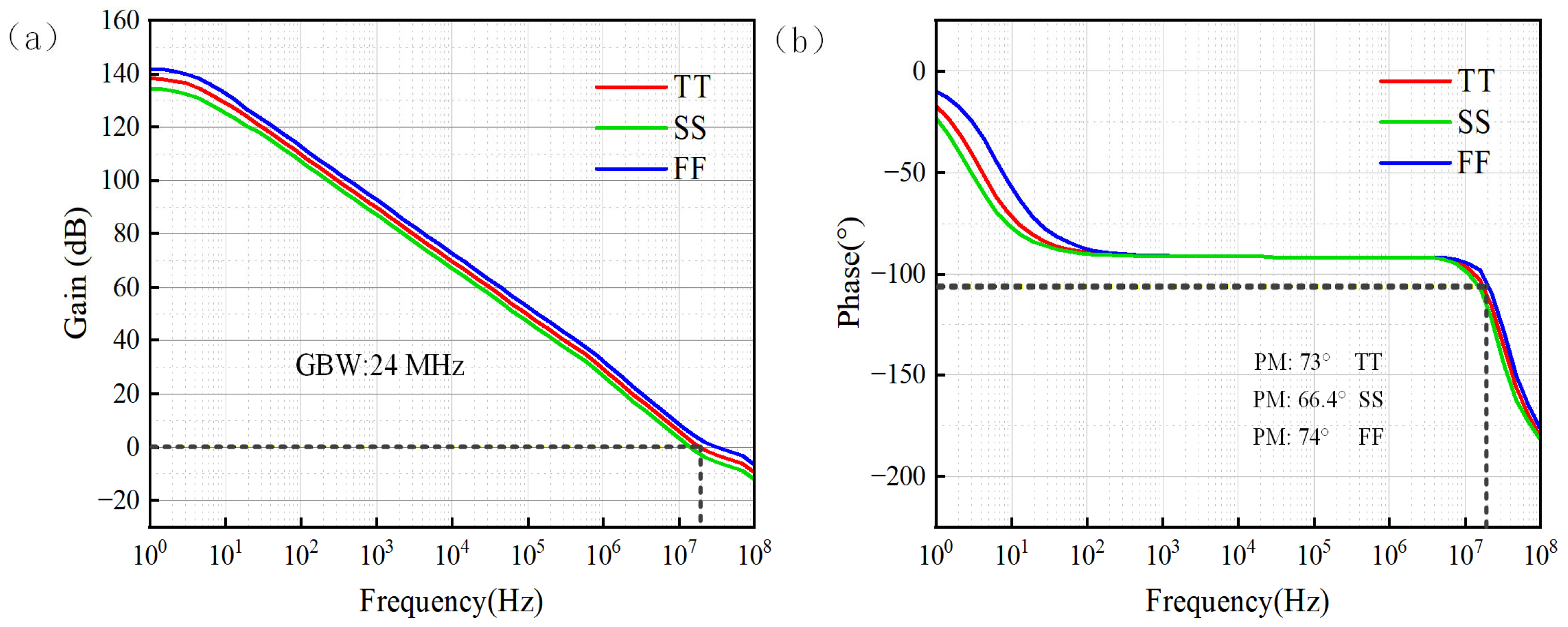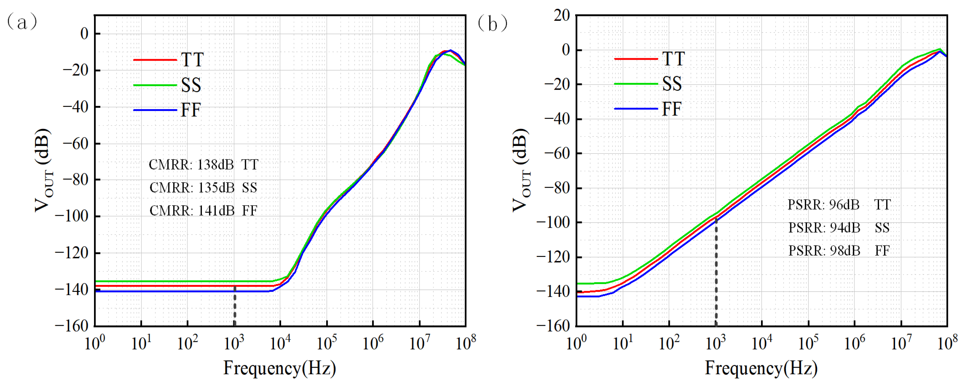 - Tao, J.; Shen, R.; Chen, H. Design of Low Offset High Swing rail-to-rail Operational Amplifier. Chin. J. Electron. Meas. Instrum. 2025, 39, 264–273. [Google Scholar]
