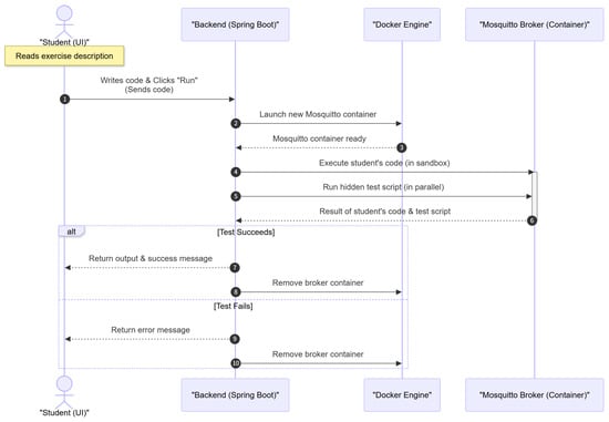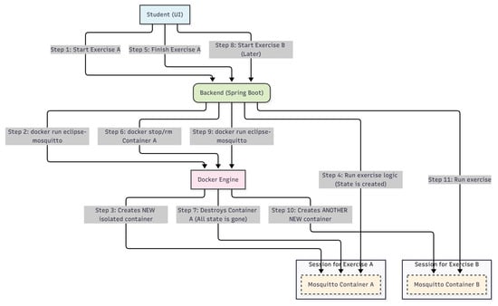 Finally, while the current system adopts a local-first, single-user, and offline architecture that is well suited for privacy-preserving self-study, this deployment model also introduces inherent limitations. A cloud-based version of the platform could better support classroom or laboratory settings, where instructors may wish to monitor student progress or manage learning activities across multiple users. Such a deployment would require significant architectural changes, including multi-user session management, user authentication, access control, secure data handling, and scalable orchestration of broker instances, for example through container orchestration frameworks such as Kubernetes. Although these extensions are beyond the scope of this work, they indicate how the proposed system can be extended to more complex deployment scenarios while preserving its educational focus.