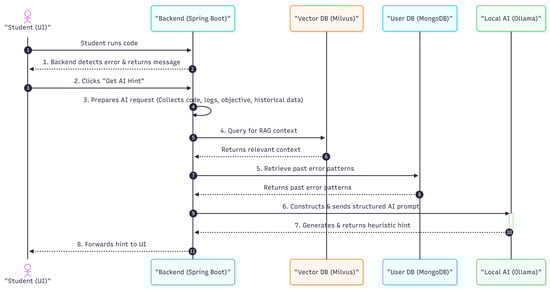 Table 1 summarizes the major software components used in the proposed learning platform. The table highlights each component’s role within the system architecture, illustrating how the backend, AI engine, vector store, and containerized execution environment collectively support reliable offline operation and pedagogically grounded feedback generation.