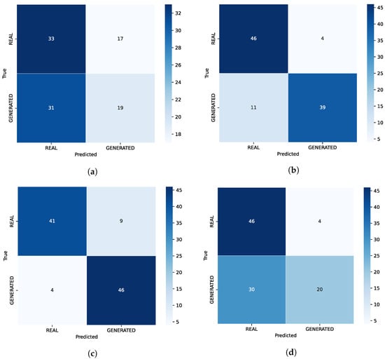 Additionally evaluation was performed using four large language models, each tasked with identifying the same 100 samples as real or generated. The answers came from Chat GPT 4o, Claude Sonnet 4, Gemini 2.5 Flash, and Llama 4, whose confusion matrices are presented in Figure 7.