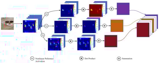 - Nonlinear preference activation: For each position (h, w) and input channel m, the feature value xb,m,h,w (where b is the batch index) is modulated according to its proximity to the filter’s preference value :where f(·) emphasizes values close to the preferred range and attenuates others. The resulting activation map reflects how well the input aligns with each filter’s learned preference.