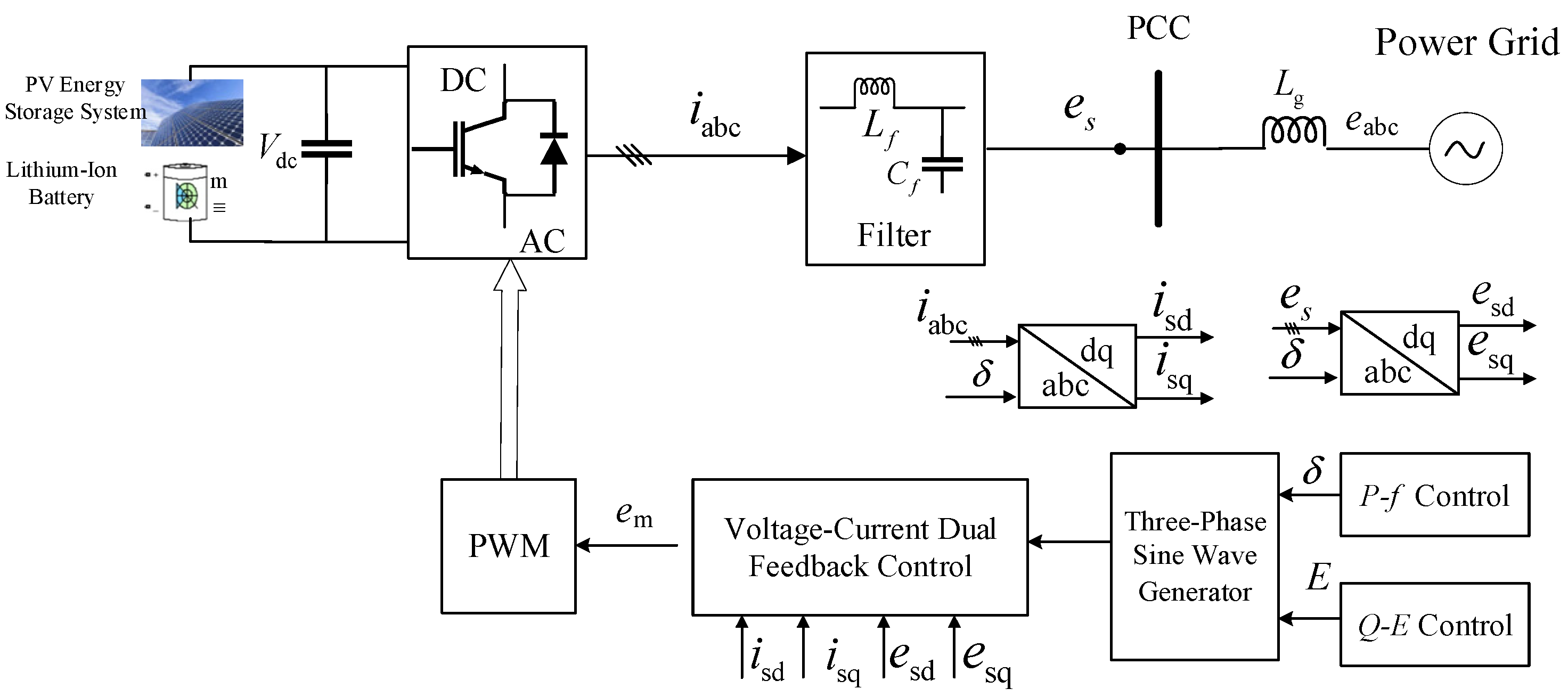 2.1. VSG Model for Photovoltaic Storage Systems