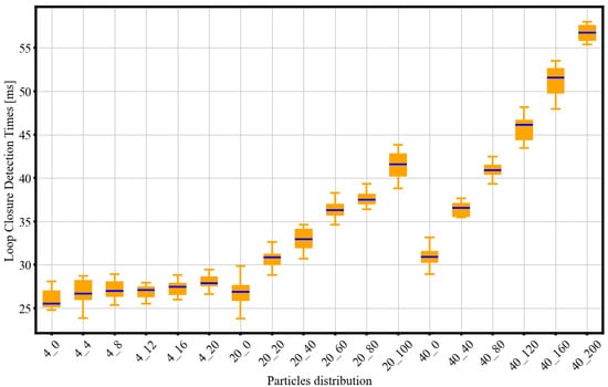 From the preceding analysis, we selected the configuration for distributing particles between similarity-based candidates and injected candidates (each modality can suggest five LCDs, to which, 20 other candidates are sampled around these best five candidates). Each sequence was executed 50 times, and the median value is reported in the presented results in Table 6 for the KITTI dataset and the Table 7 for the self-collected dataset.