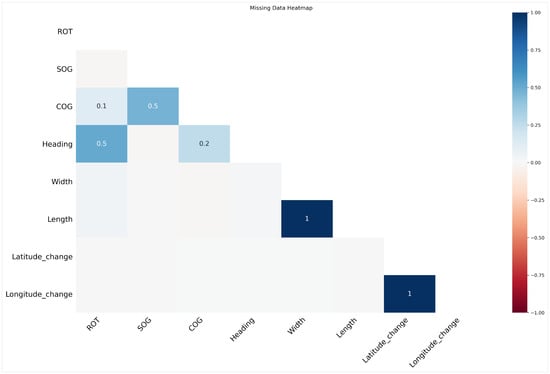 We conducted a detailed analysis of the raw AIS data, with a subset of sample records presented in Table 1. Additionally, a missing data heatmap in Figure 4 was generated using AIS data from a specific day to further illustrate the patterns of missing values.