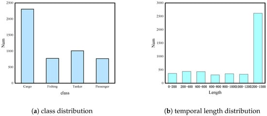 The detailed information of the dataset for the four types of vessels—Cargo, Passenger, Fishing, and Tanker—obtained after the preliminary preprocessing phase is shown in Table 3. During the experiment, the training set needs to be divided, with a ratio of 8:2 for the training set to the testing set.