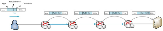 As illustrated in Figure 5, the receiver initiates a request for a chunk. In the first request packet, the minCacheLoad field and the CacheNode field are both initialized to Null.