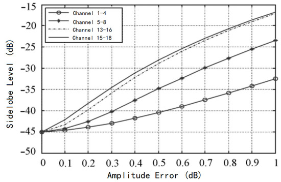 Sidelobe level variation curve with amplitude error when amplitude and phase errors are present in different channels.