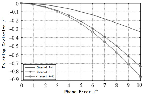 Beam pointing deviation variation curve with phase error when amplitude and phase errors are present in different channels.