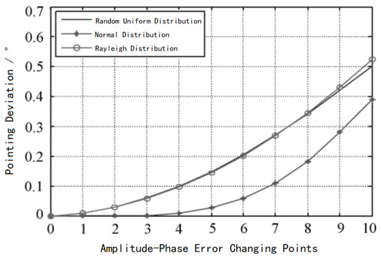 Further comparison reveals that phase errors play a decisive role in beam pointing. As phase errors increase, beam pointing deviations also increase. Conversely, amplitude errors primarily determine sidelobe levels. Moreover, when amplitude and phase errors follow different distribution patterns, their impact on the radiation pattern varies accordingly.