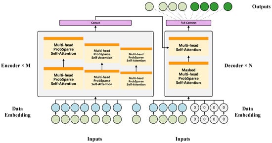 Informer [25], a transformer-based model, further enhances the capabilities of transformer, achieving remarkable advancements in time-series forecasting. As shown in Figure 1, the overall architecture of Informer involves encoding the embedded input using M encoders to extract sample features. These features are then decoded by N decoders, and the final result is produced after passing through a fully connected layer. Informer has been successfully applied to tasks such as forecasting the temperature of electricity transformers, electricity consumption loads, and weather, demonstrating outstanding performance. In this study, we apply Informer to spaceflight telemetry data.