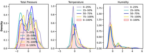 Distribution discrepancy of total pressure, temperature, and humidity data.