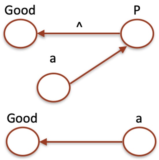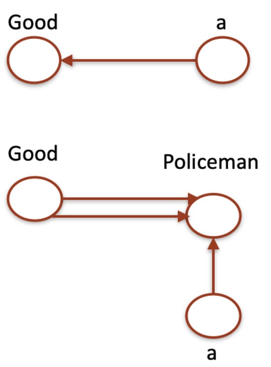 Of course, “John is good” and “John is a good policeman” use “good” in two completely different ways, making it evident that the same word, in other contexts, can exhibit different logical types. Namely, in the first case, good is a predicate, while in the second one, it is an ad-predicate. Figure 3 introduces the graphical notation of two arrows for modification.